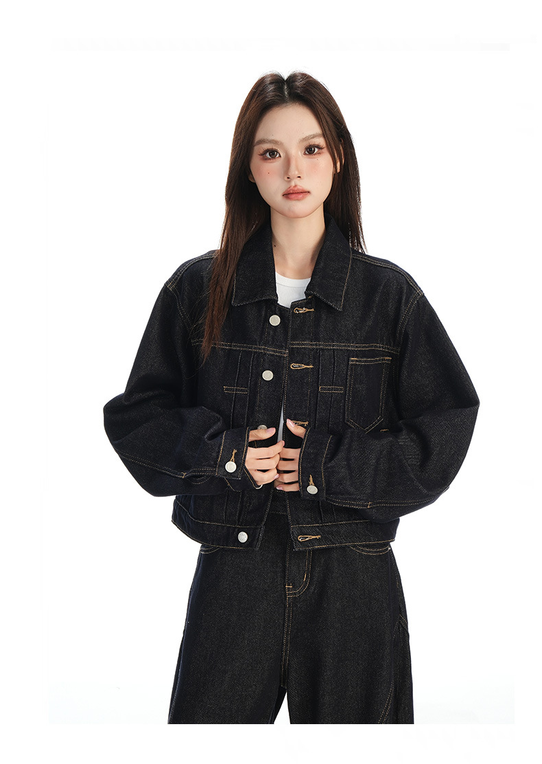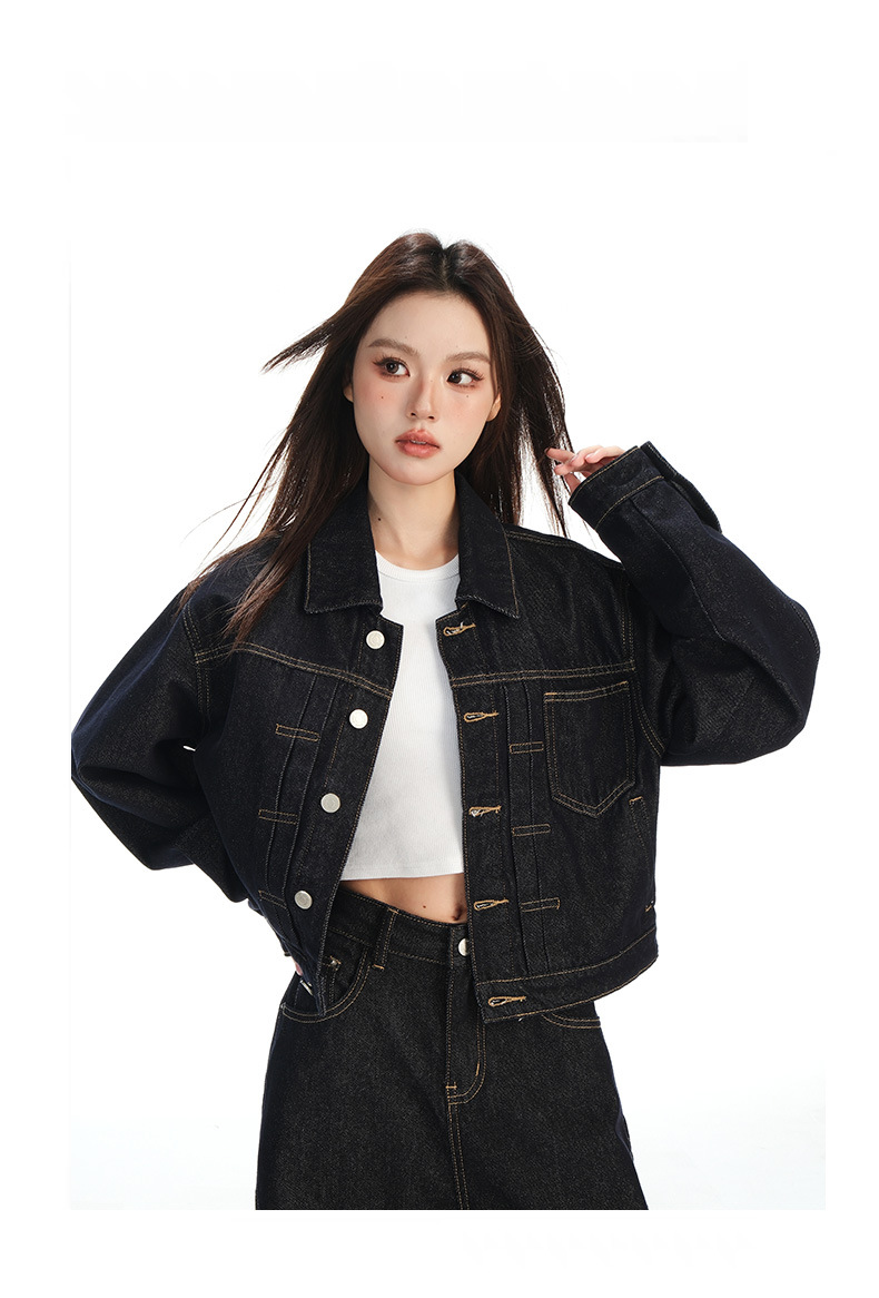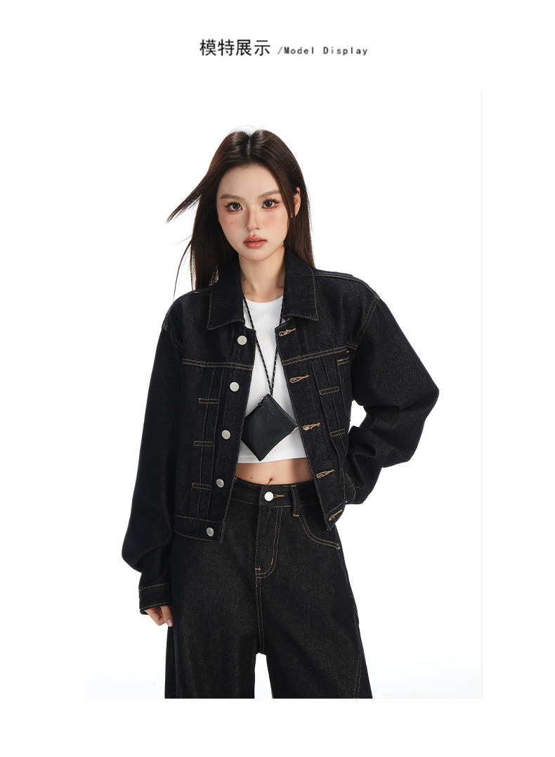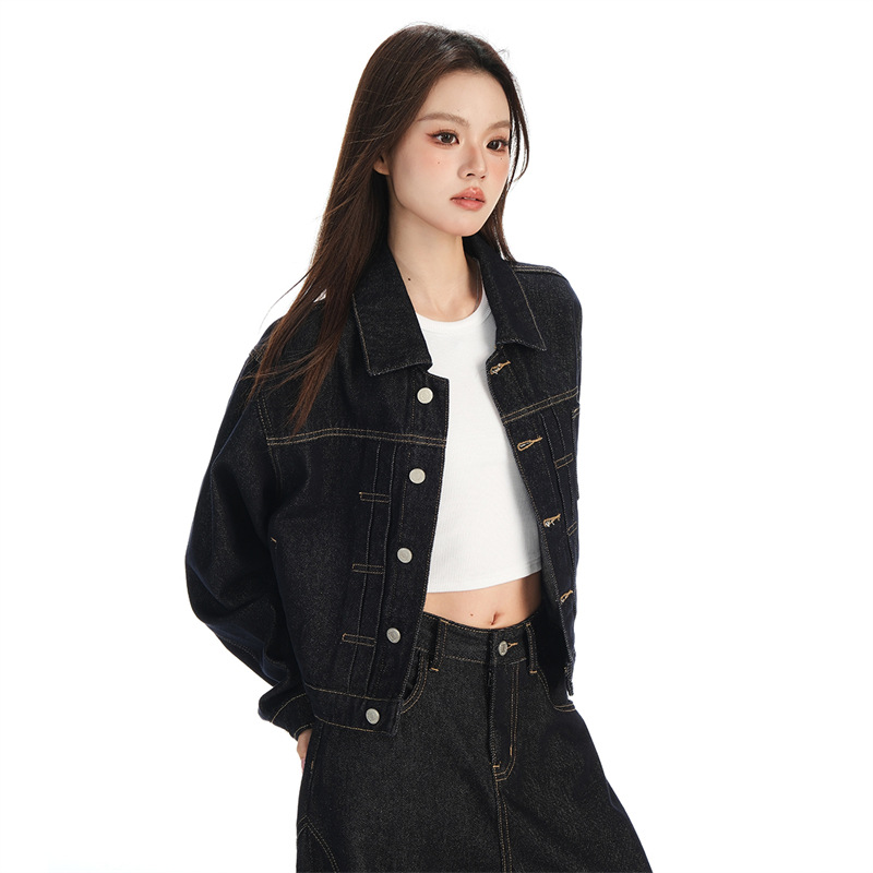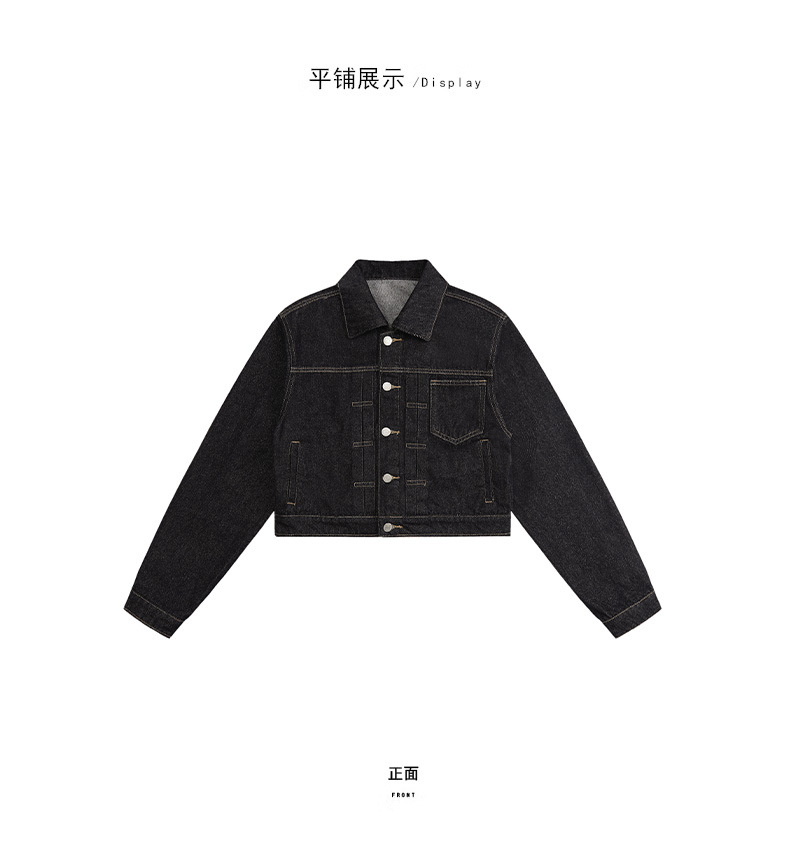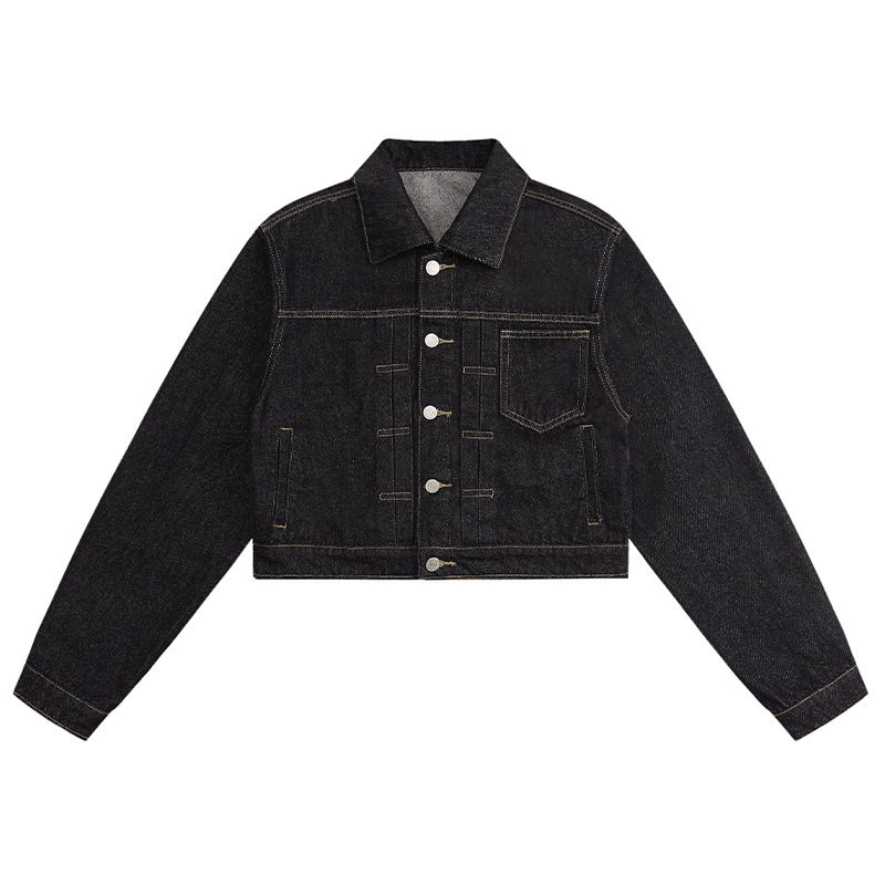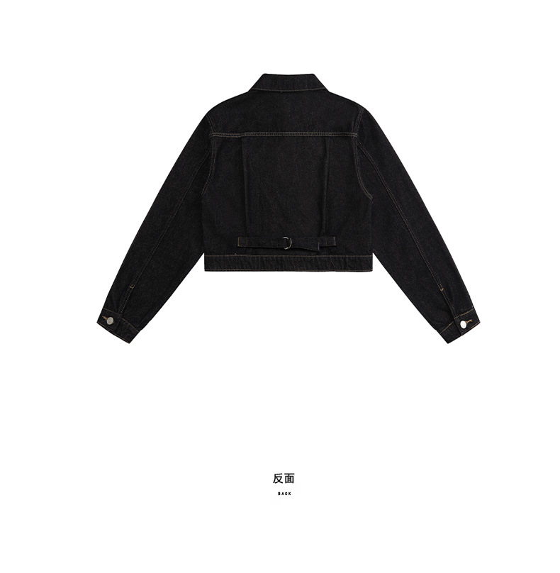 black gold lapel single breasted slingback short denim jacket for women early autumn new anti-fading fashion simple