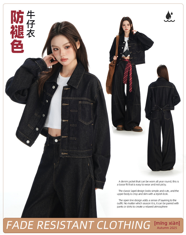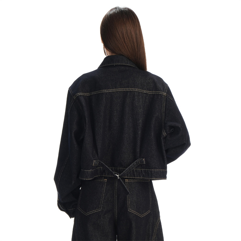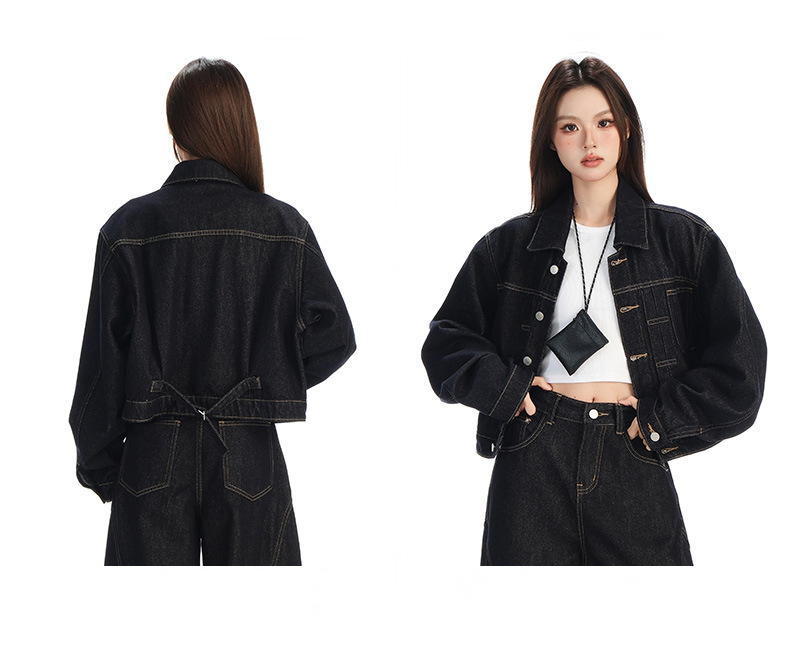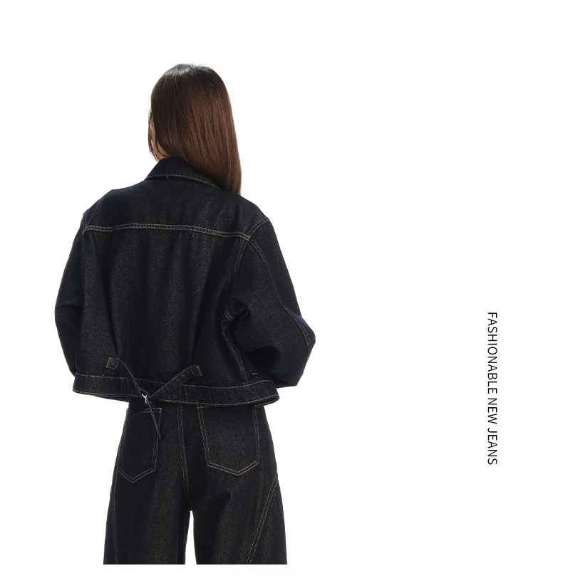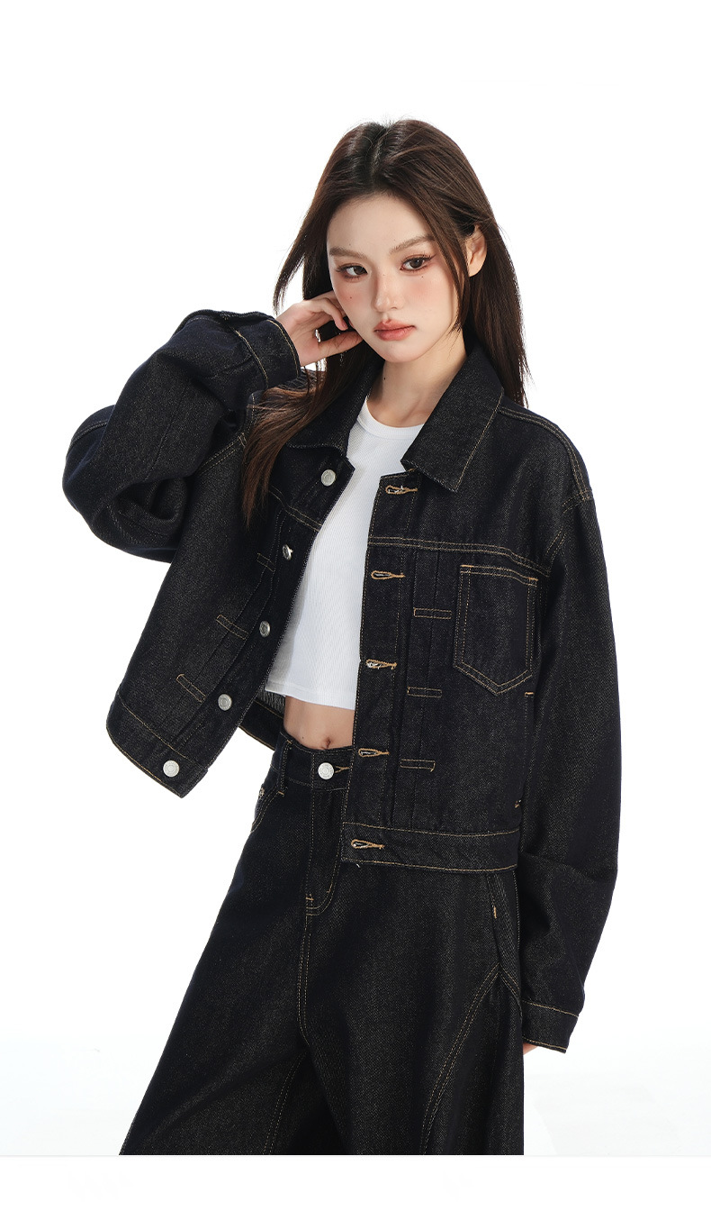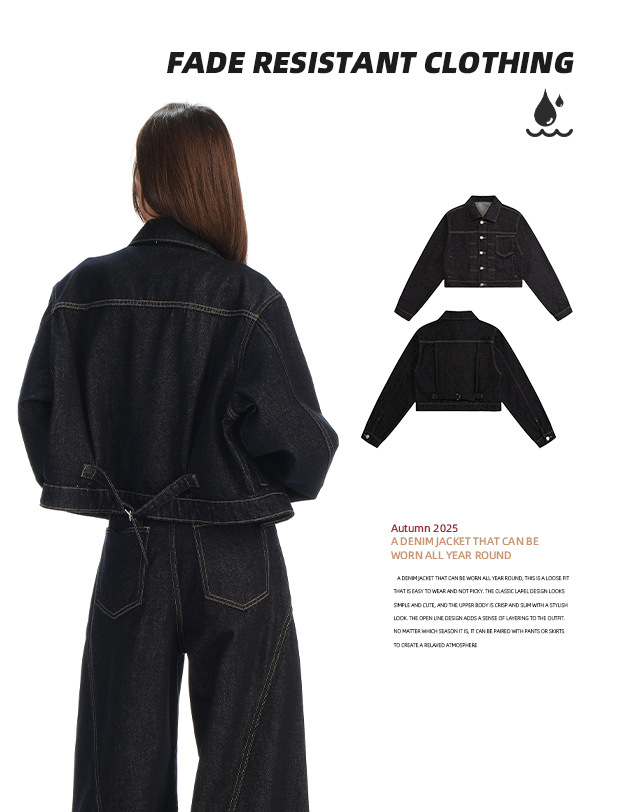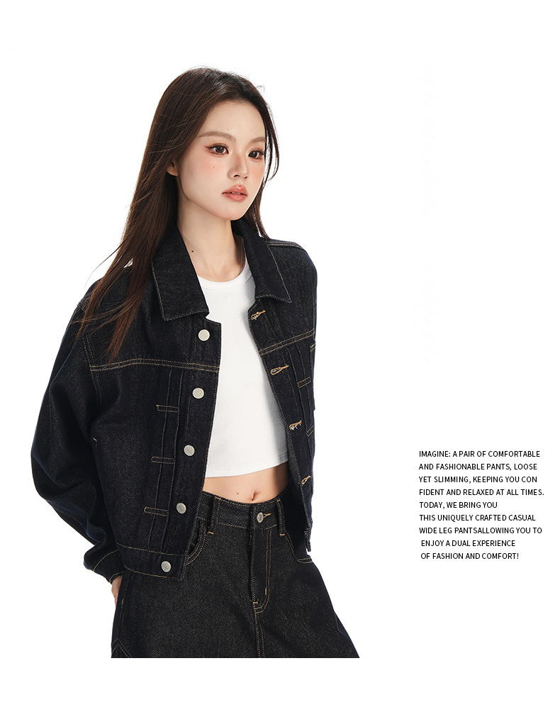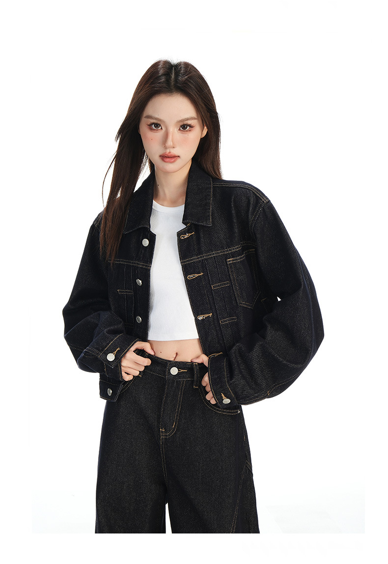 black gold lapel single breasted slingback short denim jacket for women early autumn new anti-fading fashion simple