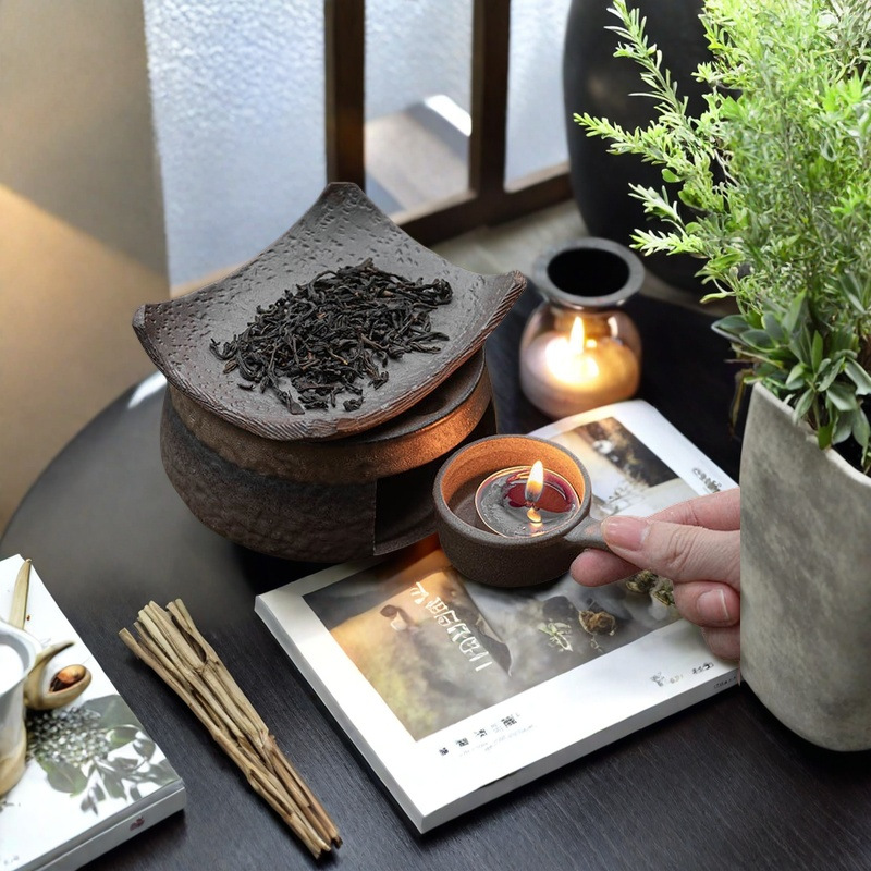 stone pattern baking tea stove + candle mop + heat-resistant dry burning tile