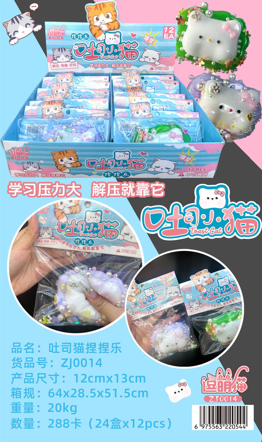 toast kitten squeezing toy/order 12 pieces and send a whole box