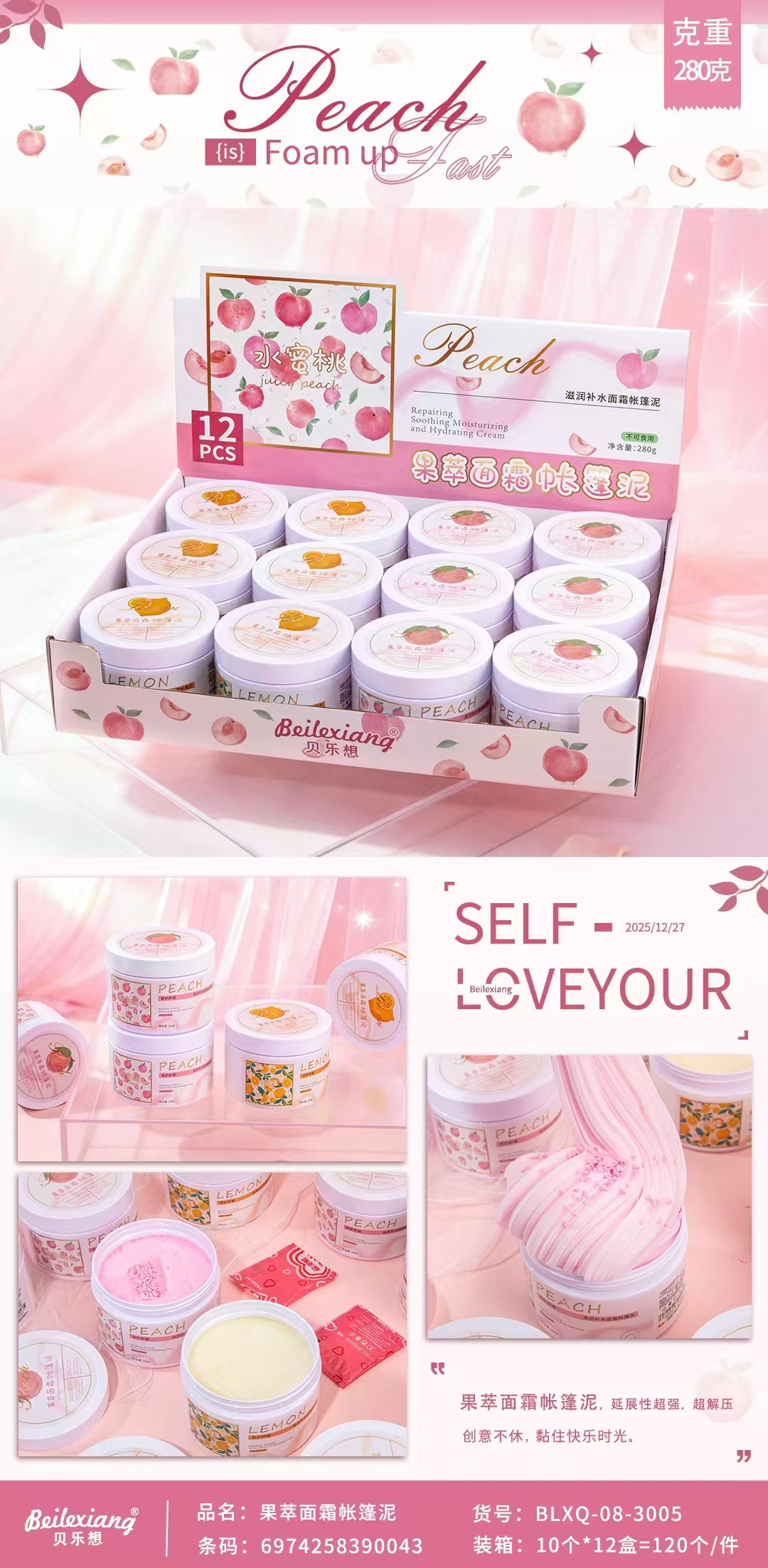3005 fruit extract facial cream tent mud pink one bottle [gently pat to combine 12 bottles]