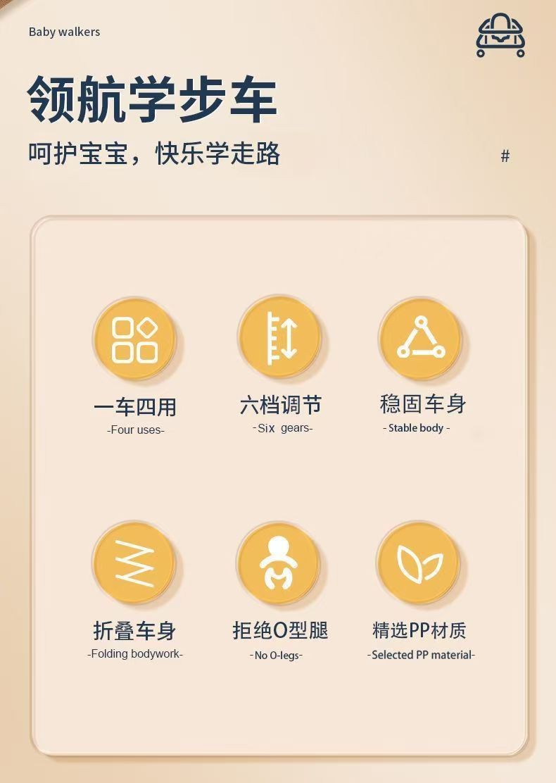 bh-801 toddler walker condensed rouge pink [flagship model] music disc + foot pad + push handle + sunshade