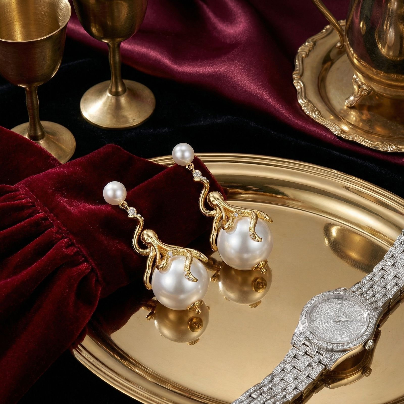qingdao mid-ancient palace style elegant new fashion personality ear stud niche design elegant earrings light luxury ornament