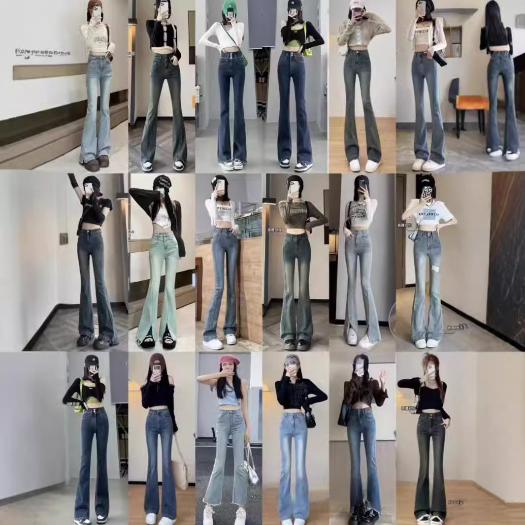 elastic high waist skinny jeans for women spring and summer new retro frayed hem all-matching slim fit miscellaneous bell-bottom pants