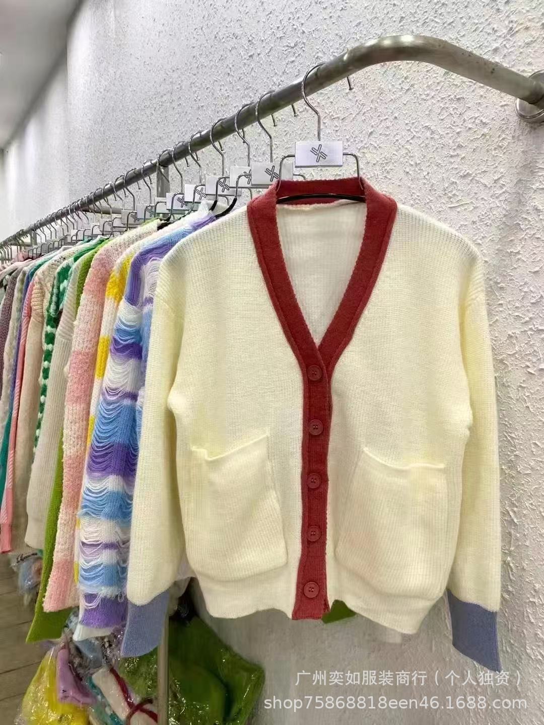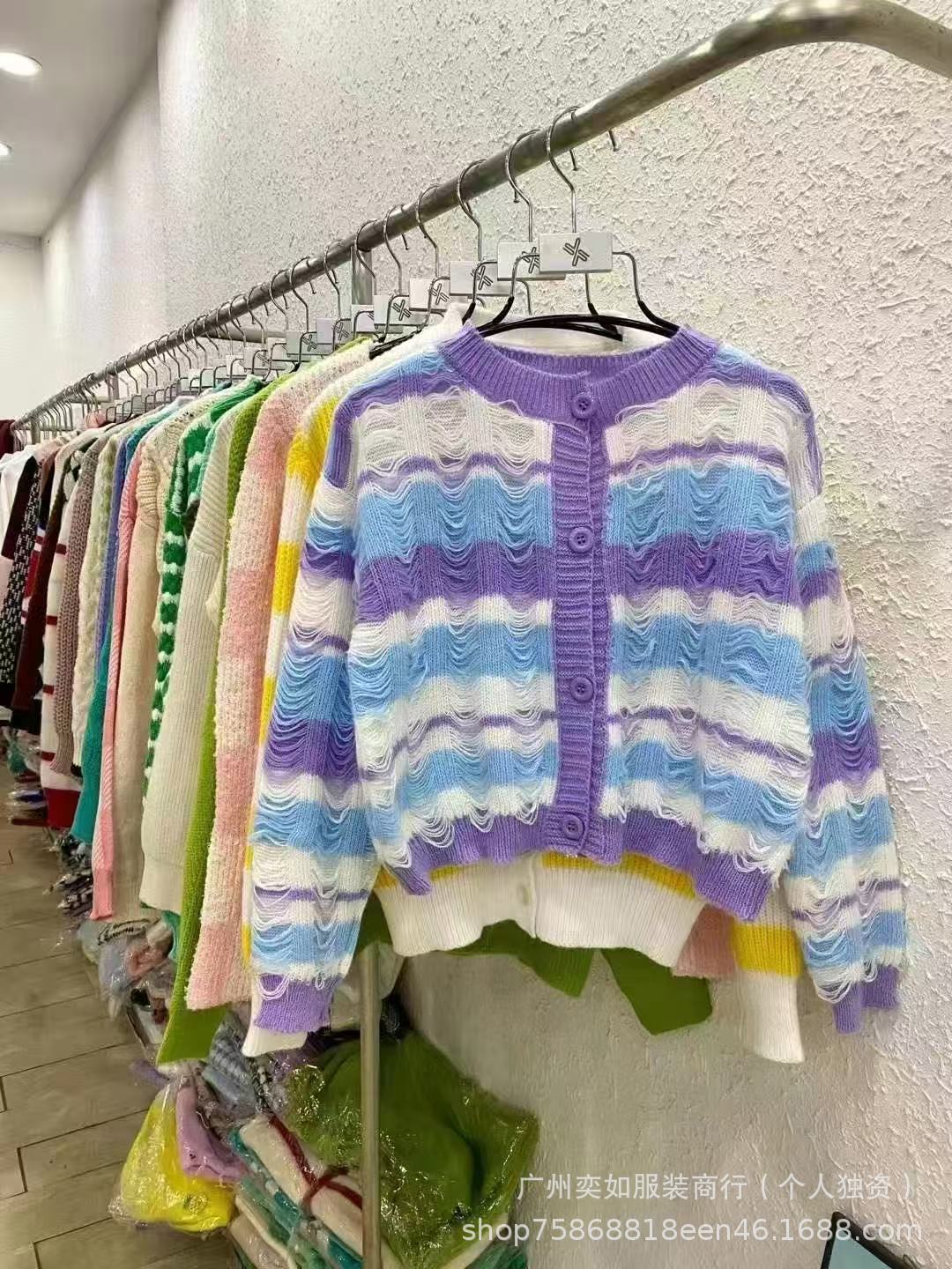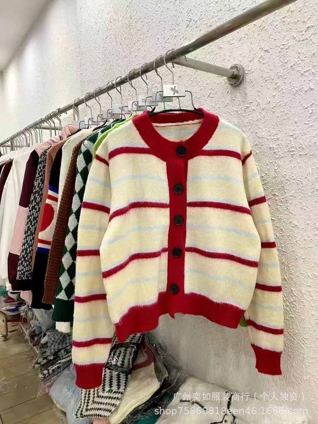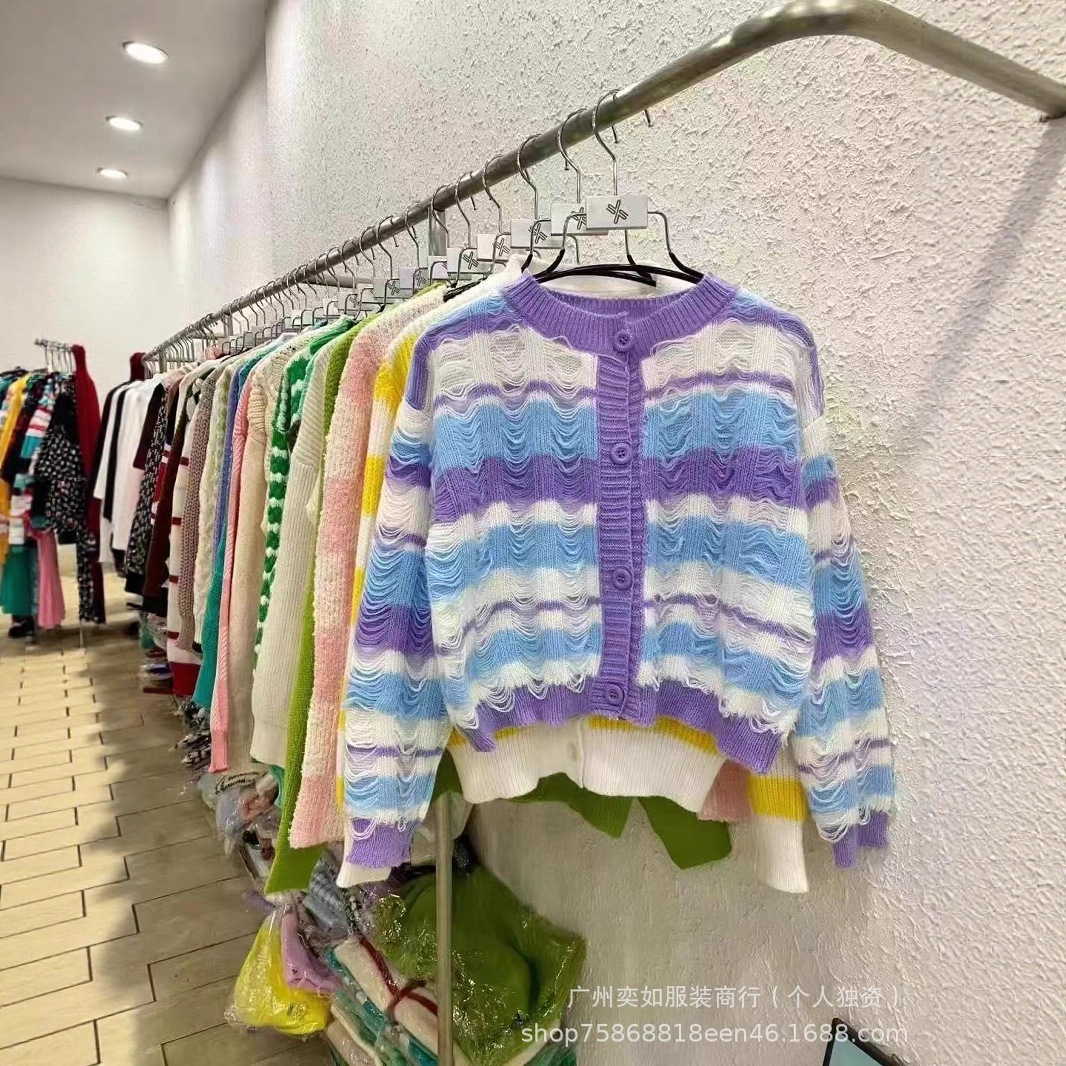 knitwear top women's autumn and winter color-contrasting stripe 13 lines beautiful girl cardigan sweater coat women's miscellaneous wholesale