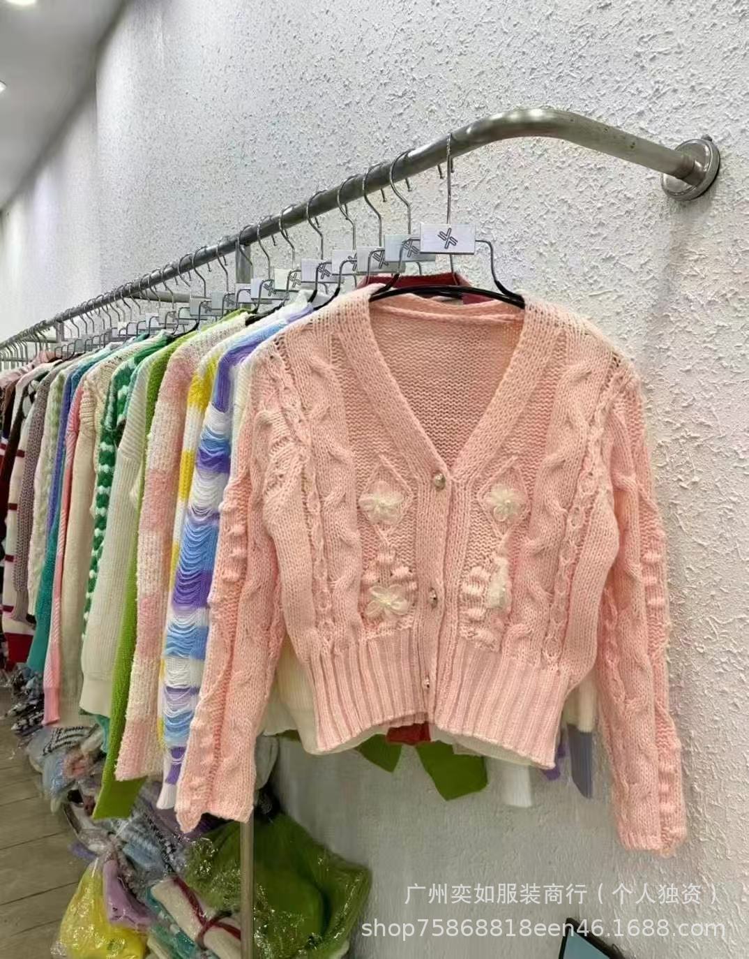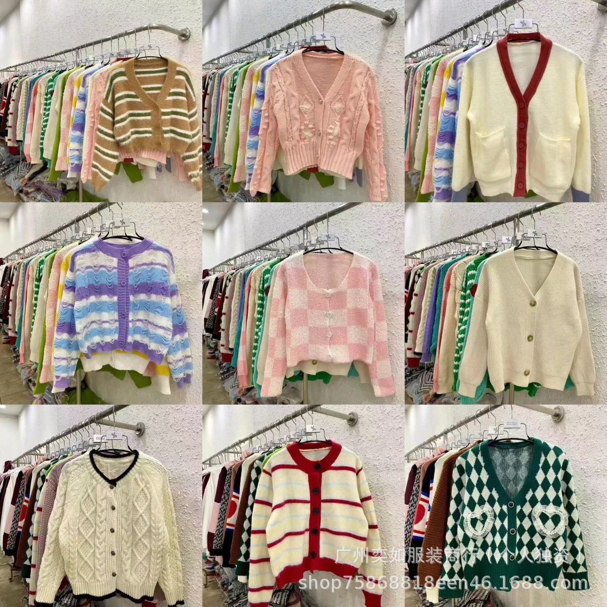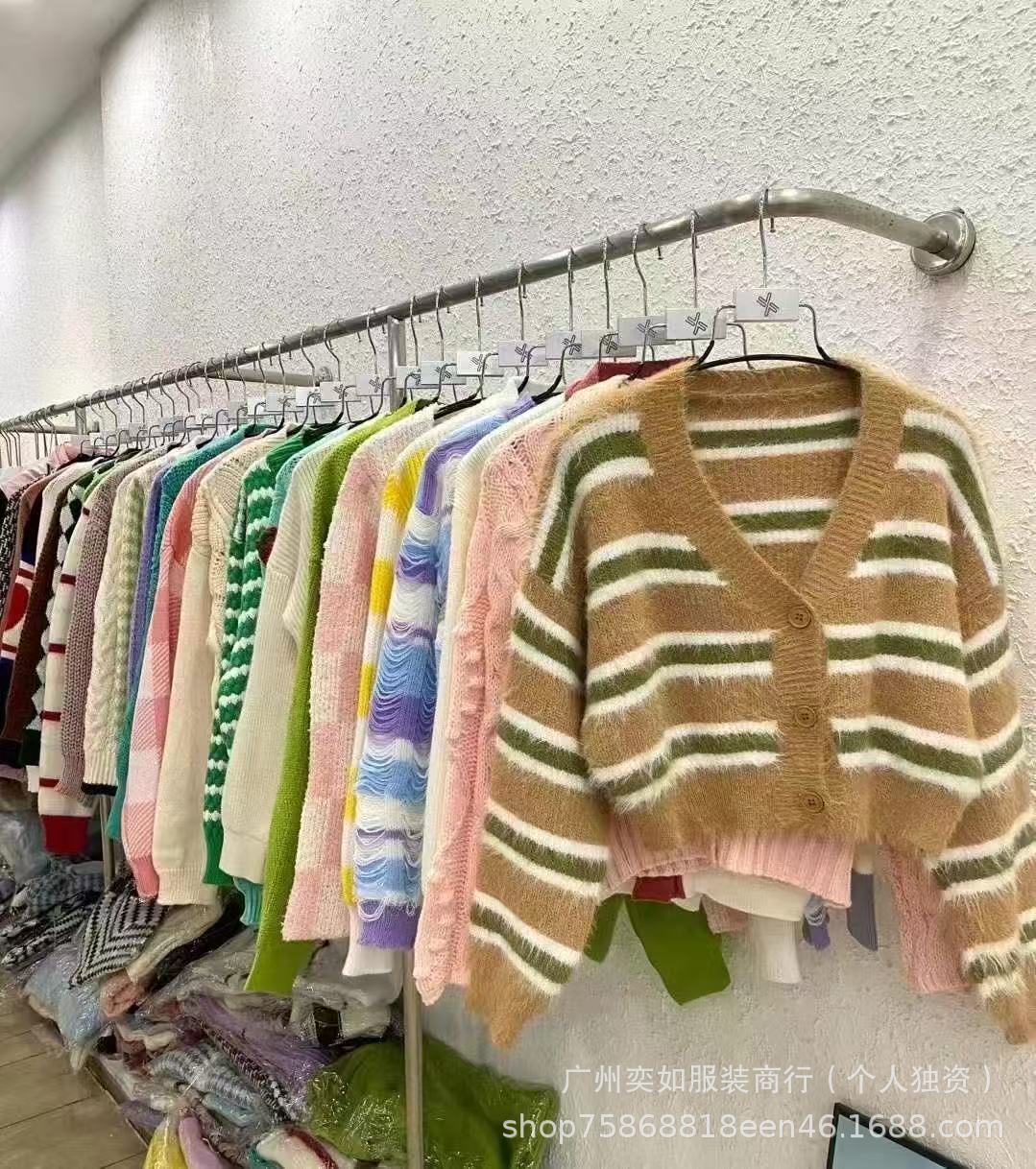 knitwear top women's autumn and winter color-contrasting stripe 13 lines beautiful girl cardigan sweater coat women's miscellaneous wholesale