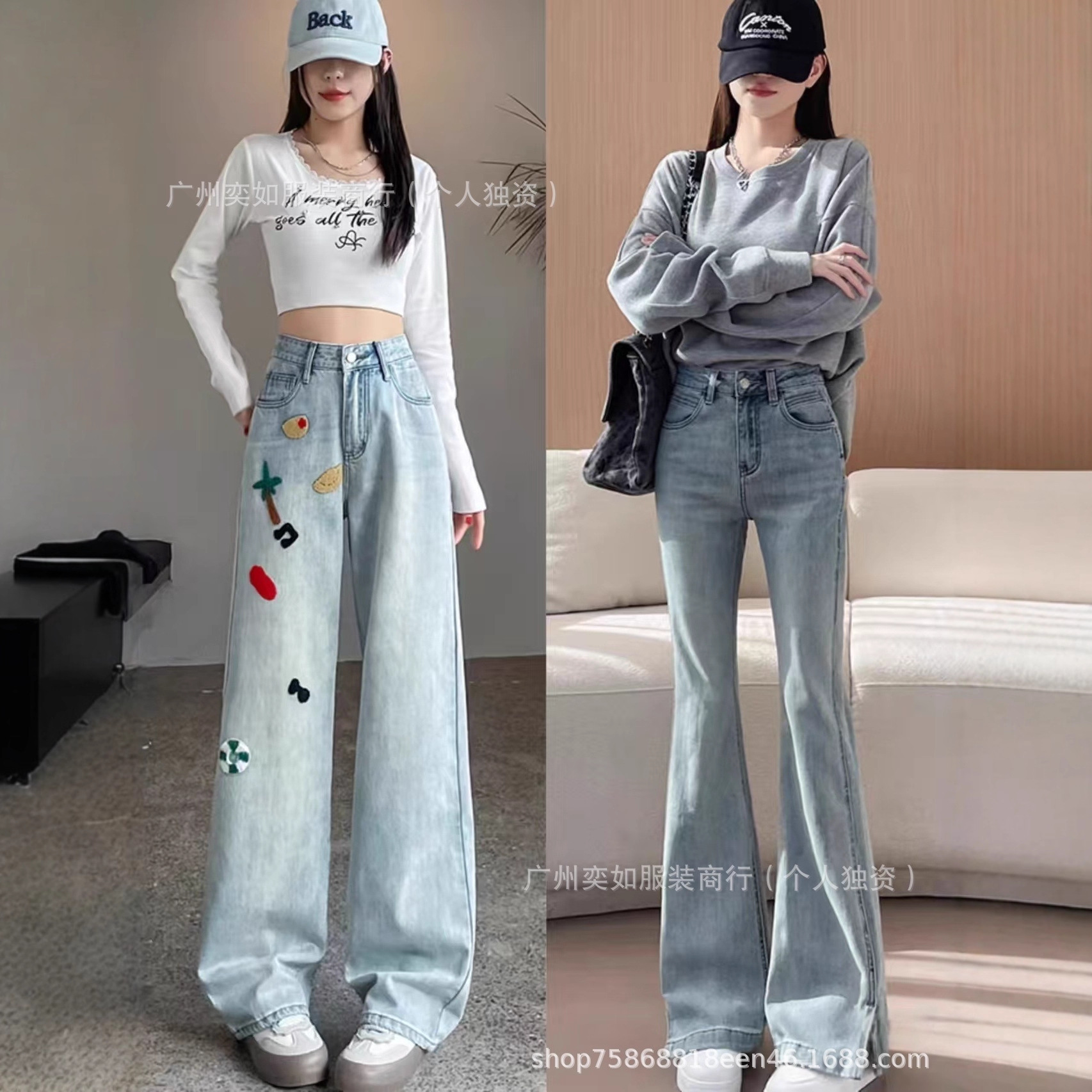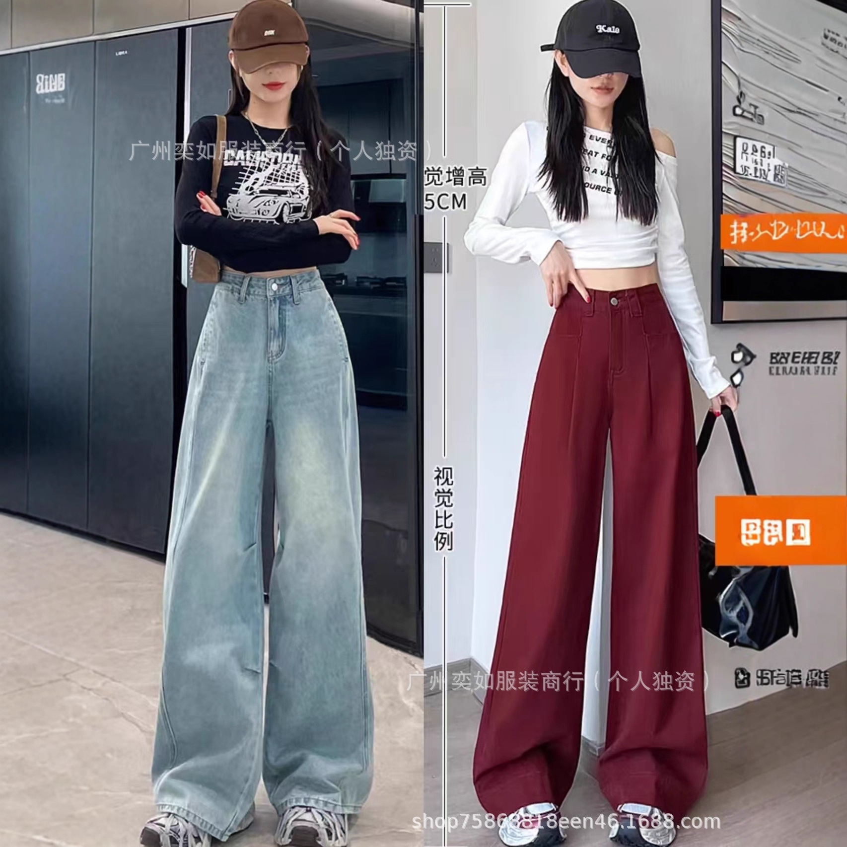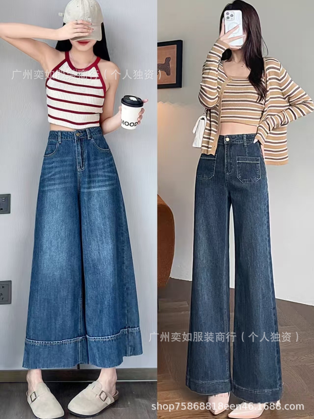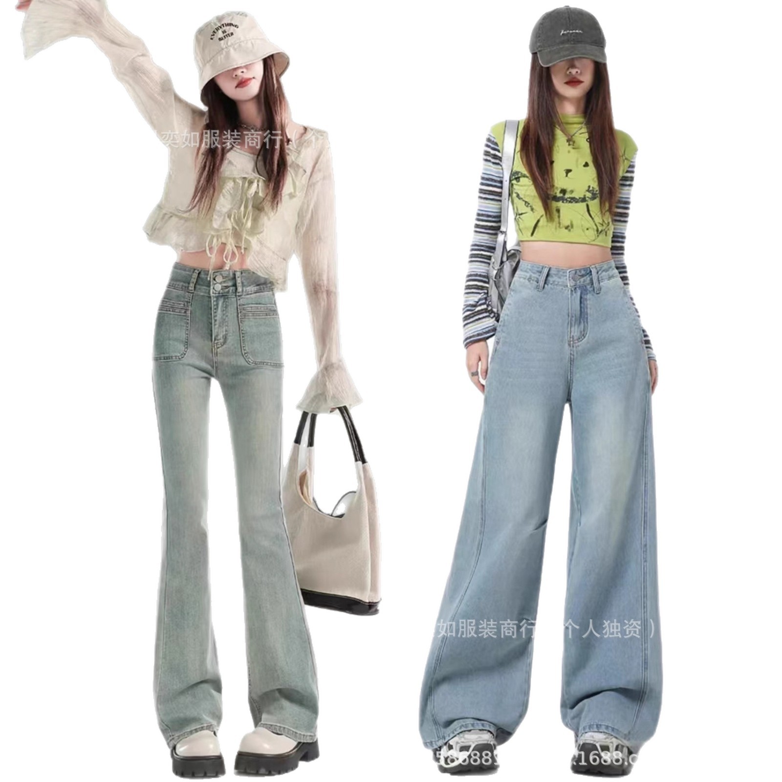 southeast asian foreign trade denim pants pants women's wide leg straight bootcut trousers high waist slimming drape miscellaneous wholesale