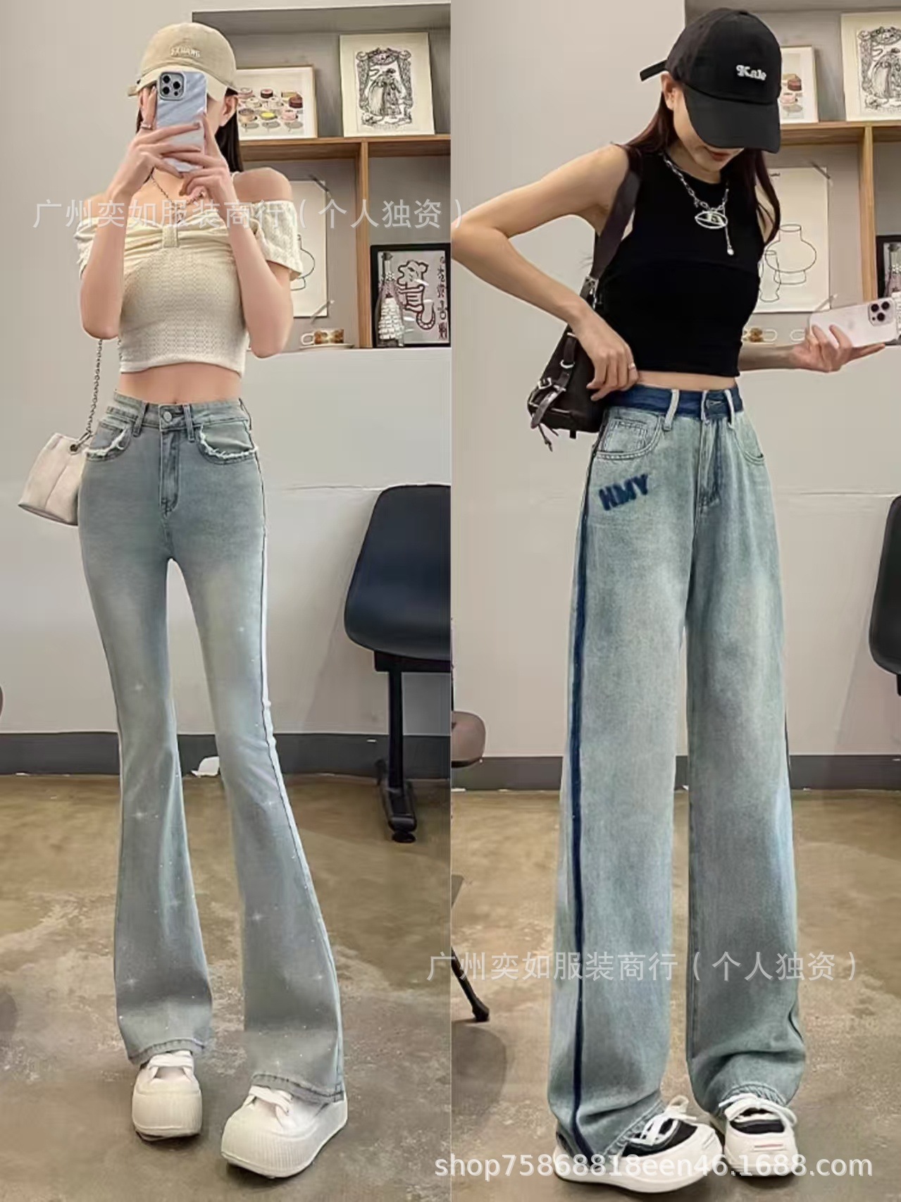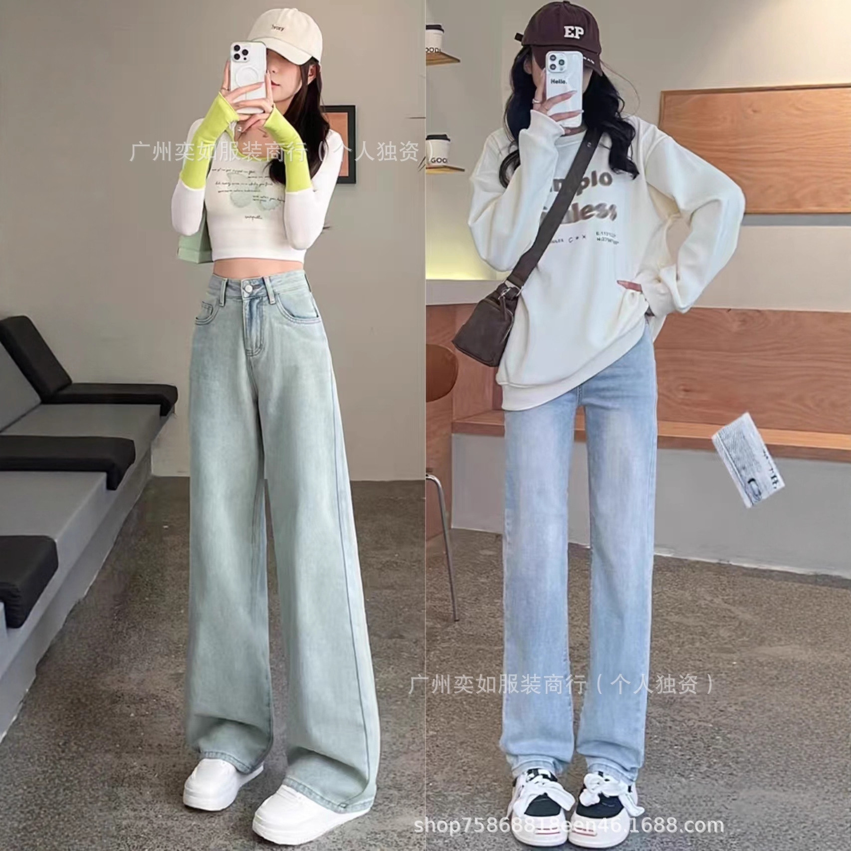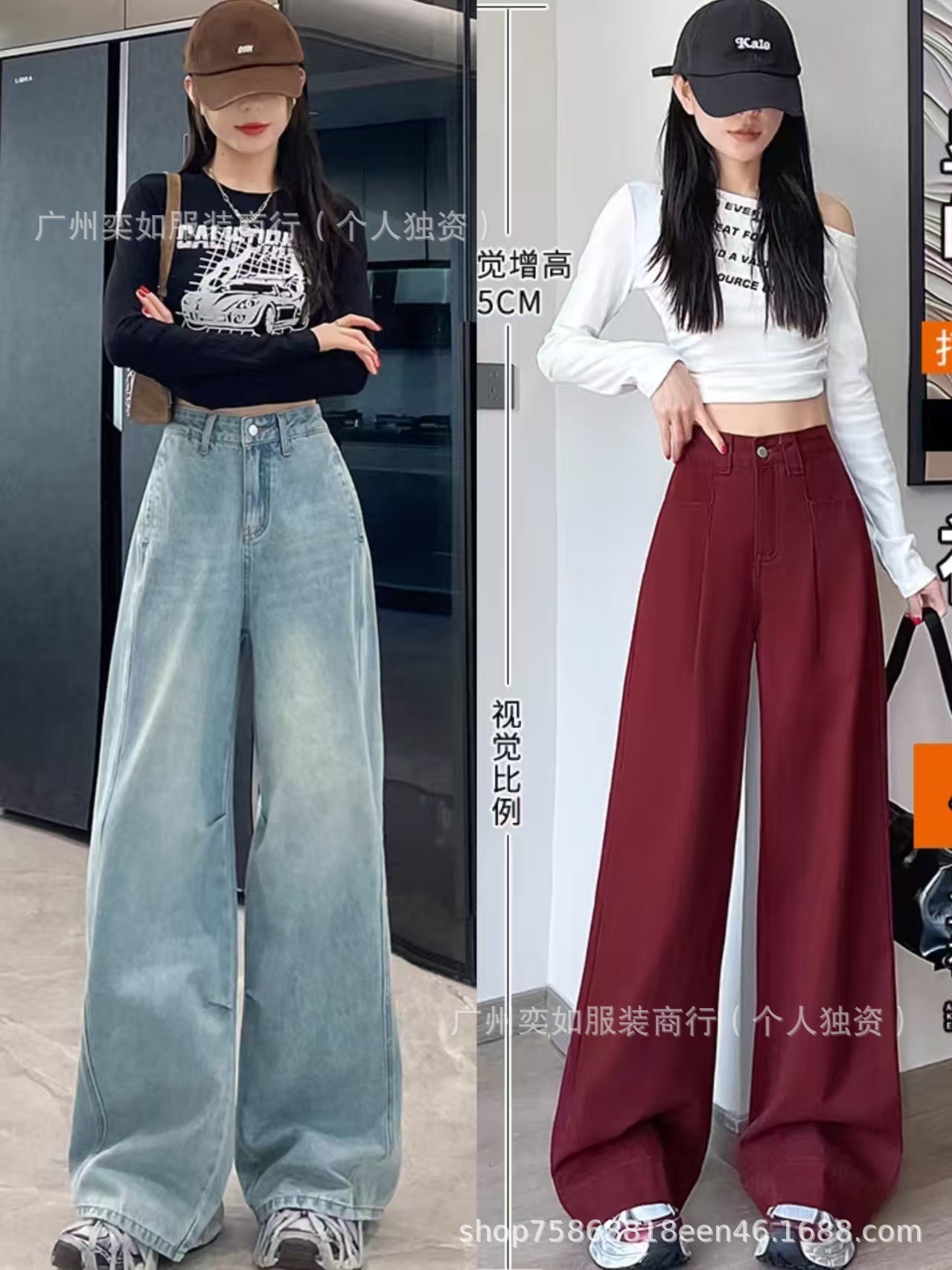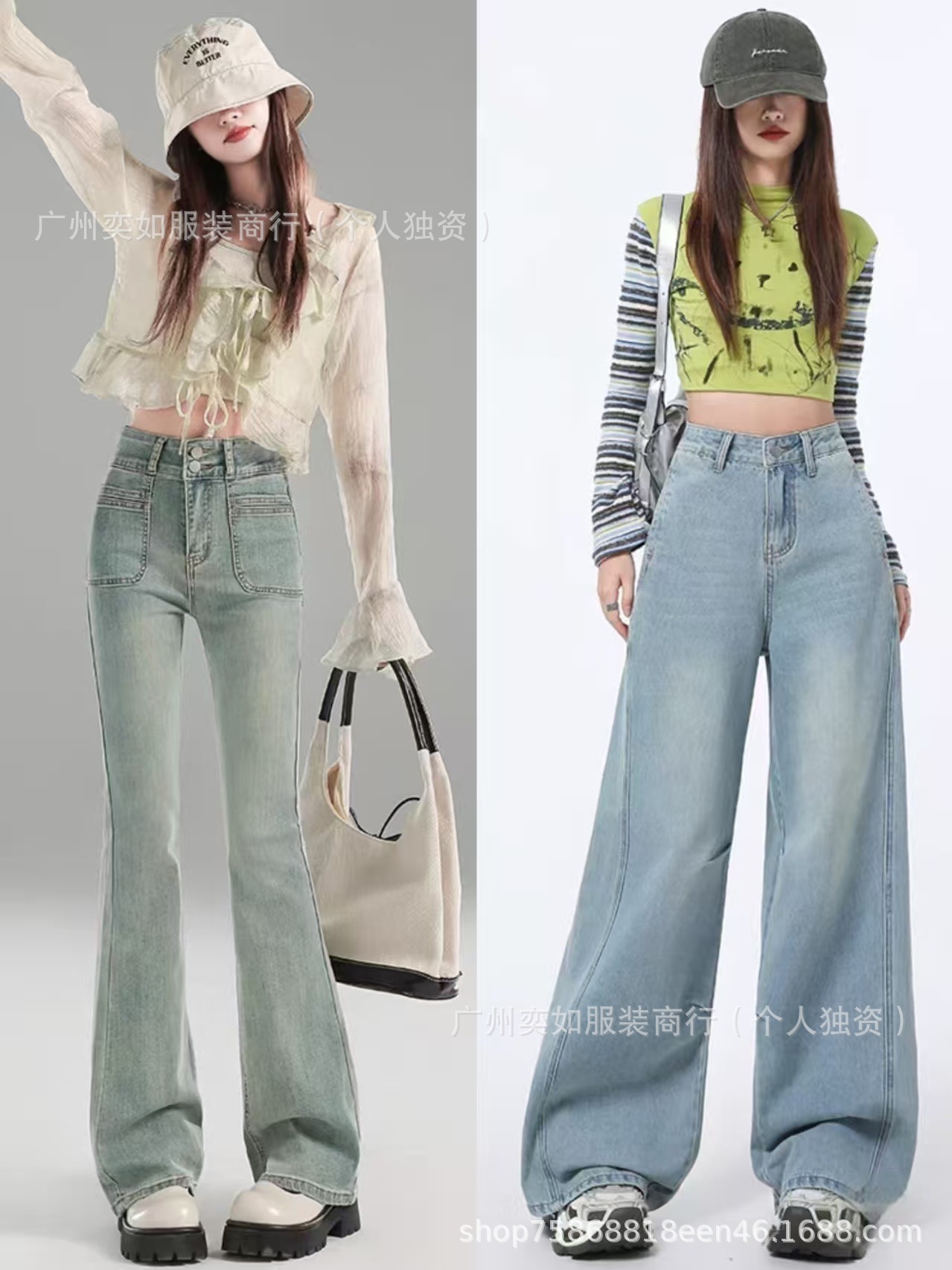 southeast asian foreign trade denim pants pants women's wide leg straight bootcut trousers high waist slimming drape miscellaneous wholesale