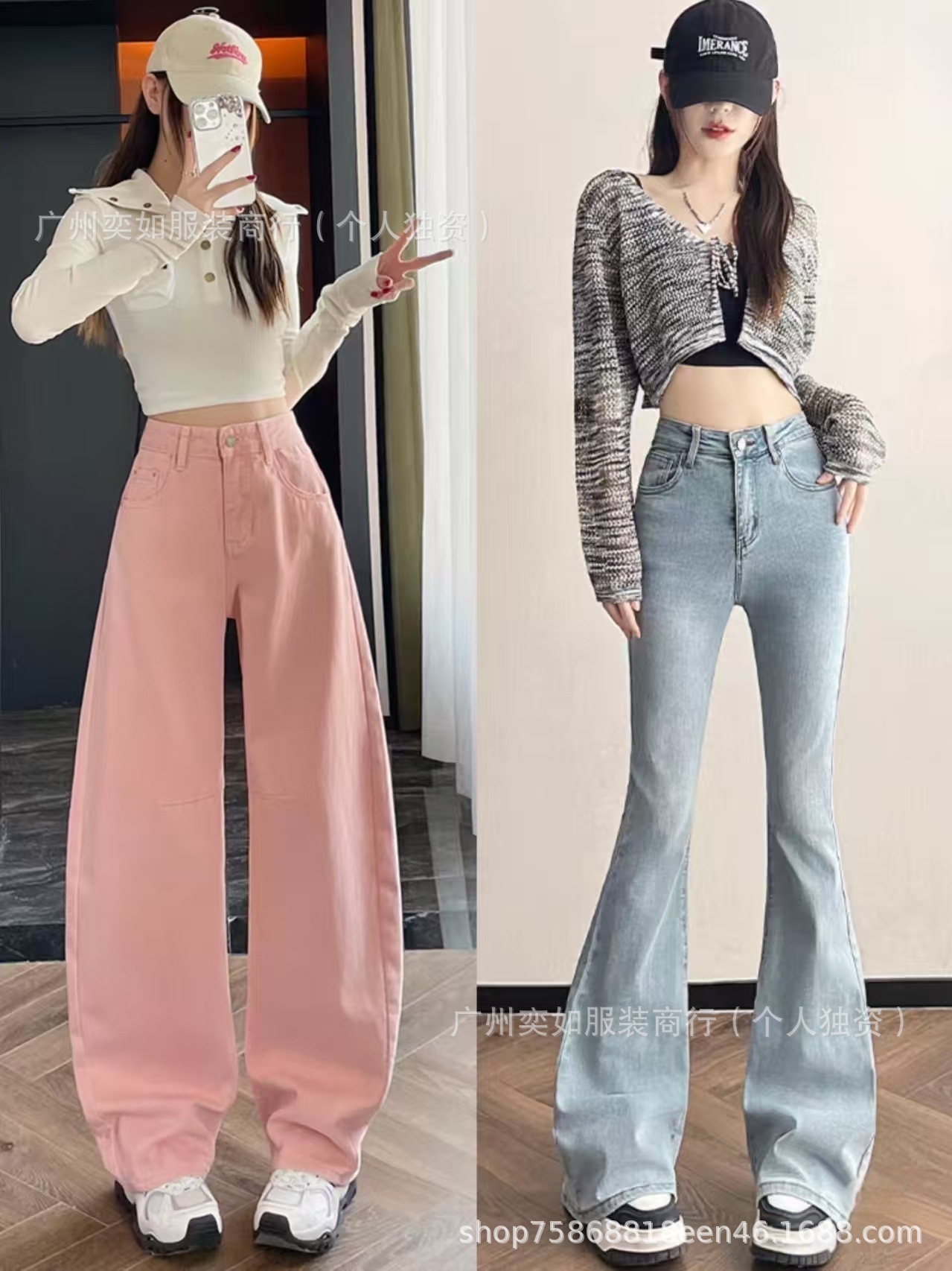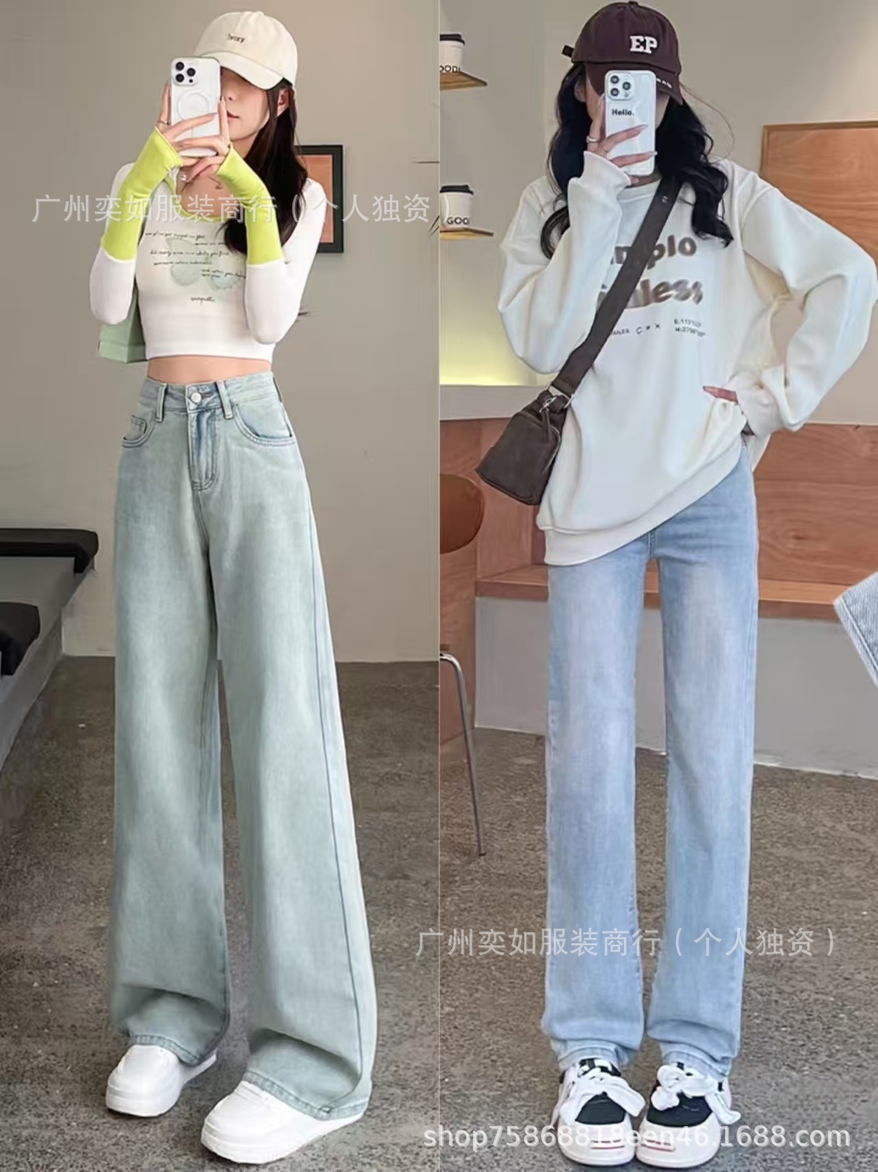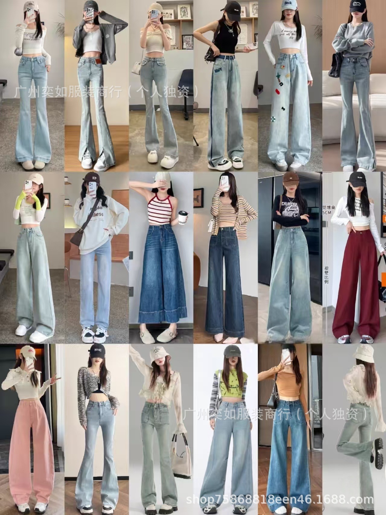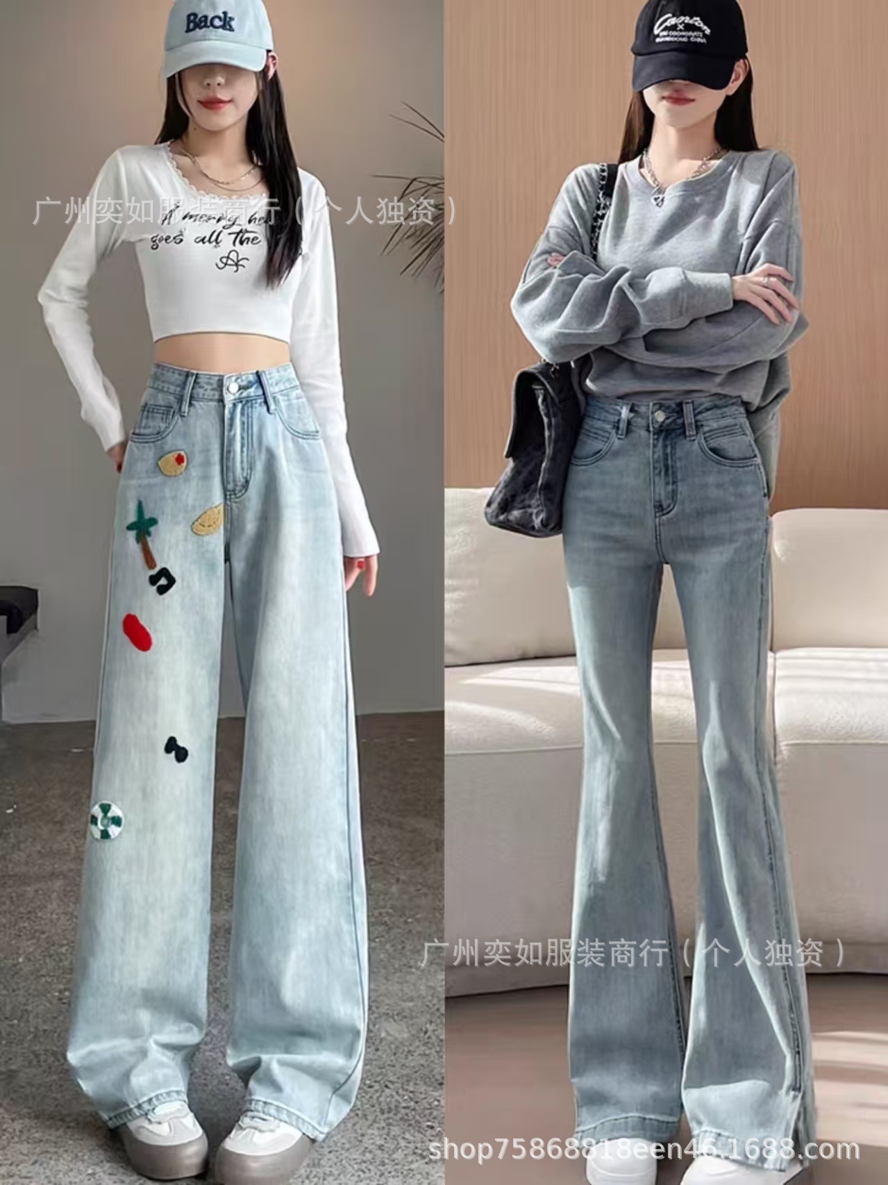 southeast asian foreign trade denim pants pants women's wide leg straight bootcut trousers high waist slimming drape miscellaneous wholesale