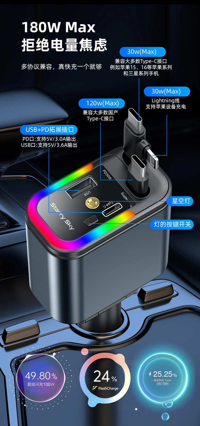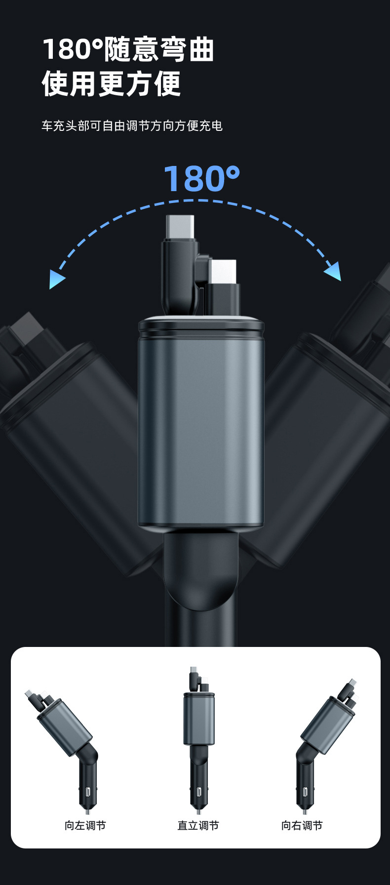 black-gray [tc+tc+apple port] one-to-five★freely retractable
