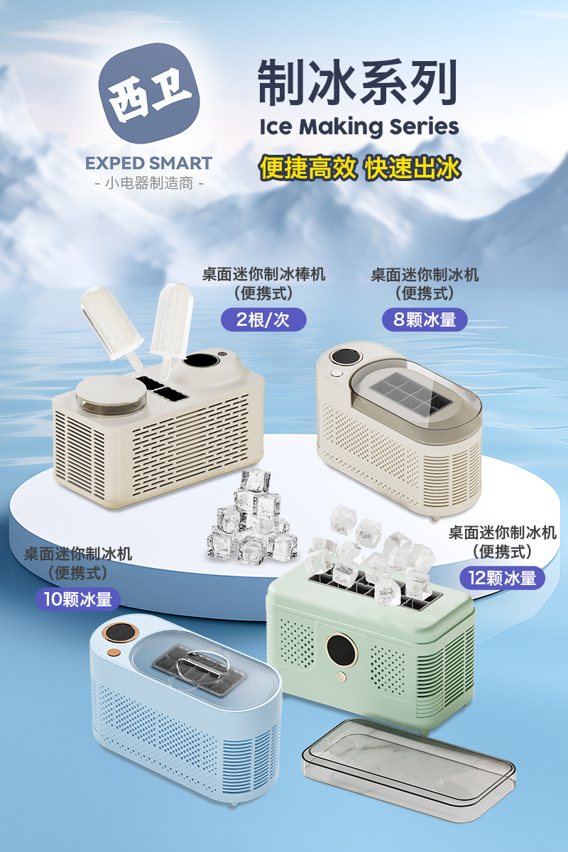 desktop small ice maker mini-portable home dormitory office camping car cube ice automatic ice maker