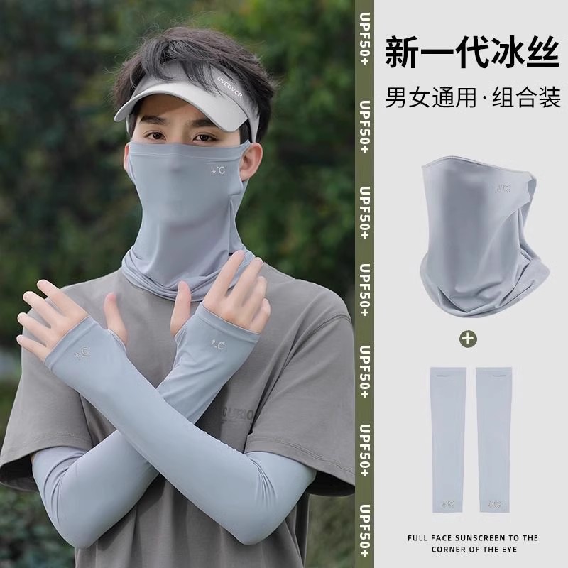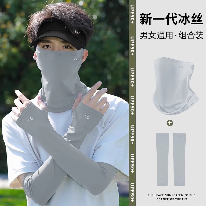 light gray three-piece set (hat + mask + oversleeve)