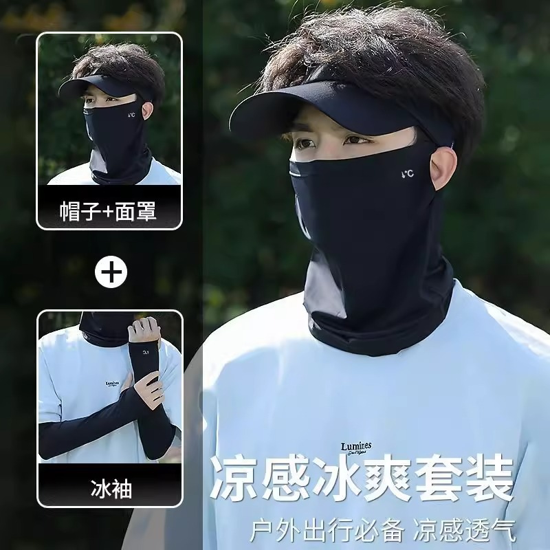 black three-piece set (hat + mask + oversleeve)