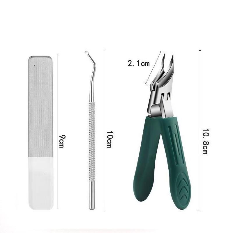 glass file + single-head nail remover + dark green super pointed large bevel + pearlescent bag