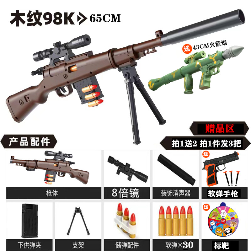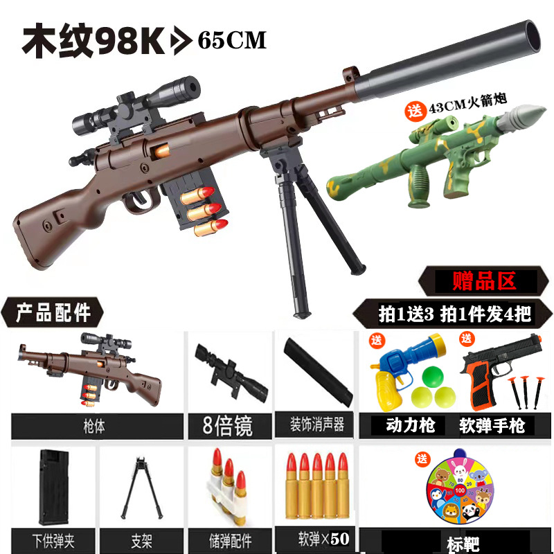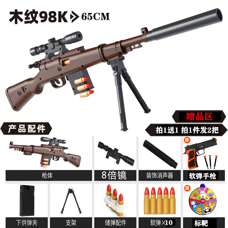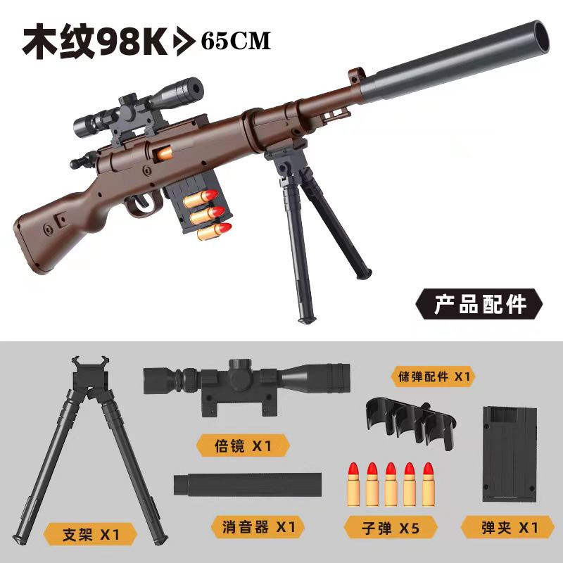 98k wooden gun: 10 soft bullets + target + pistol