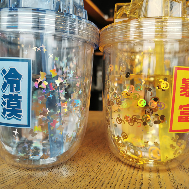 Double-layer glittering starry sky straw plastic cup
