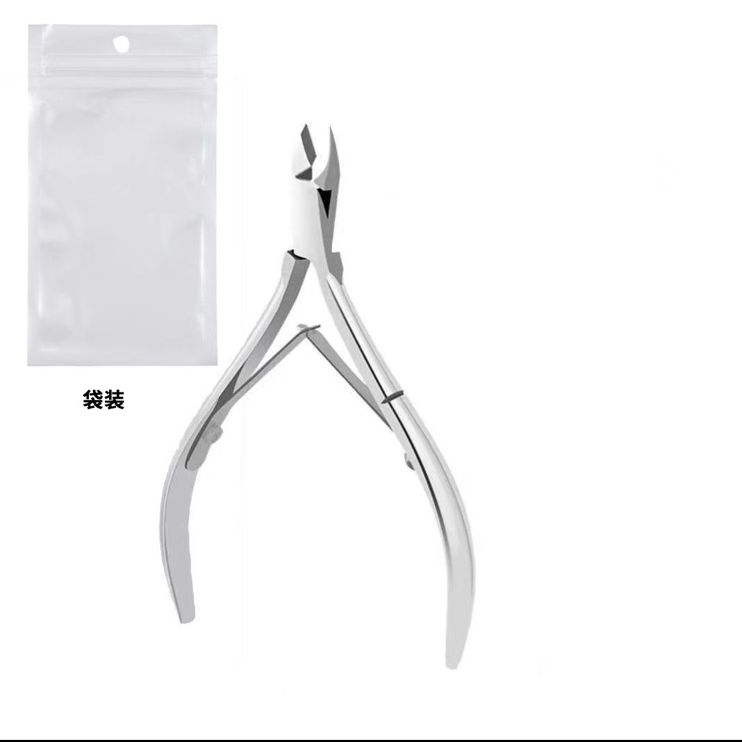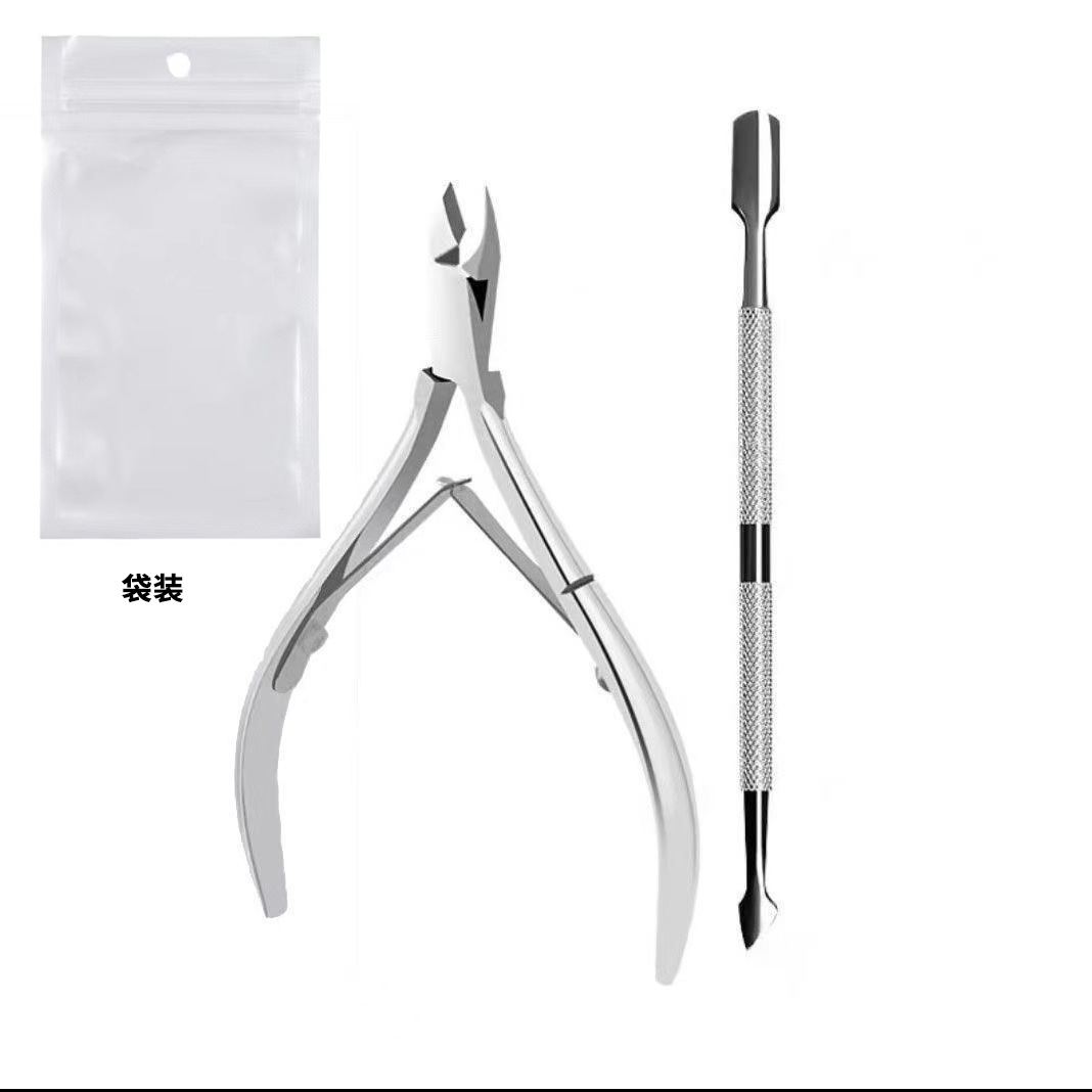 silver dead skin clipper + steel push + nail file + nipper for removing dead skin + white pearlescent bag