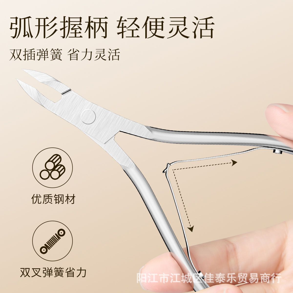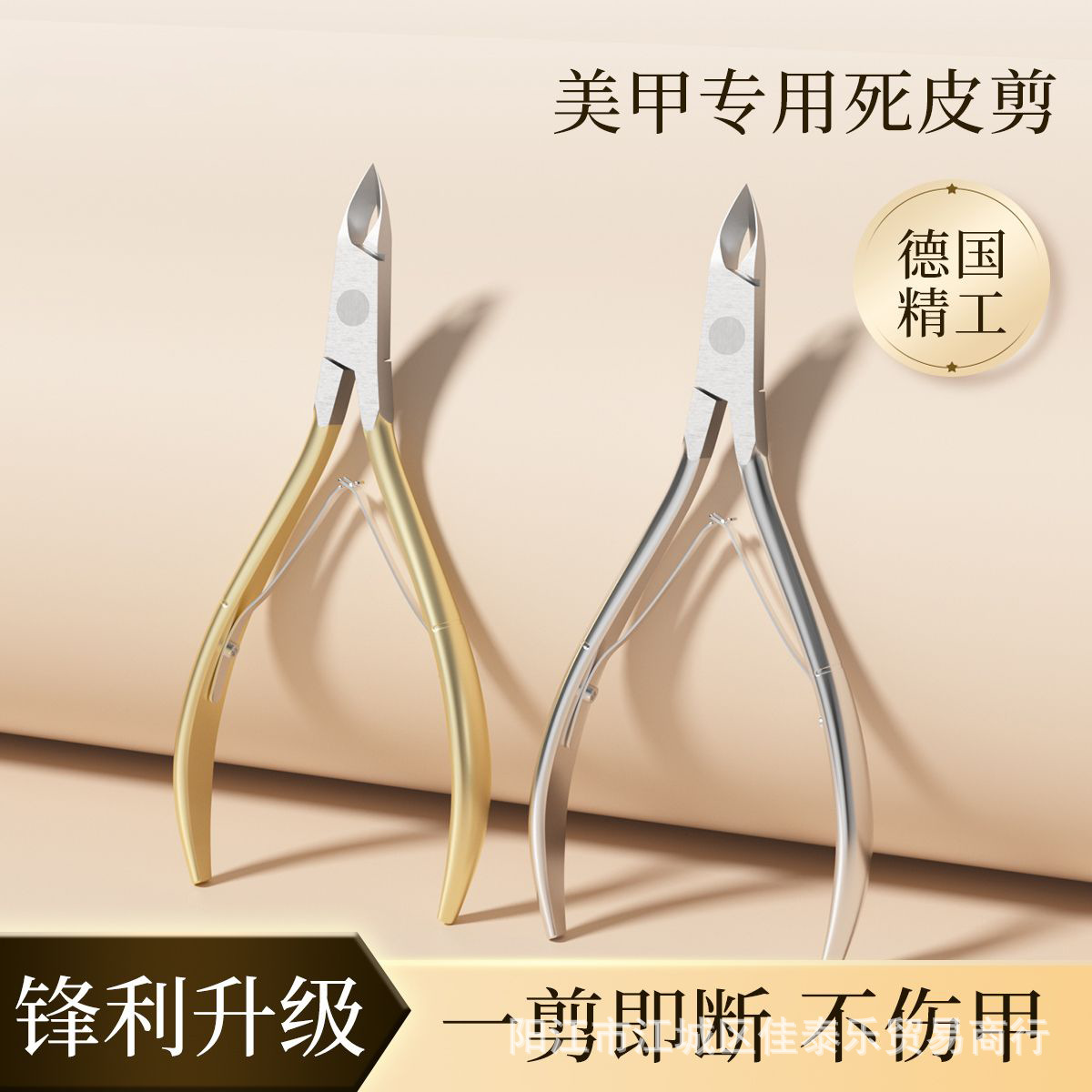 gold dead skin clipper + steel push + white pearlescent bag