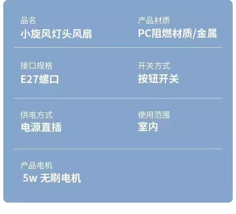 e27 screw little fan (with cowhide color box packaging)