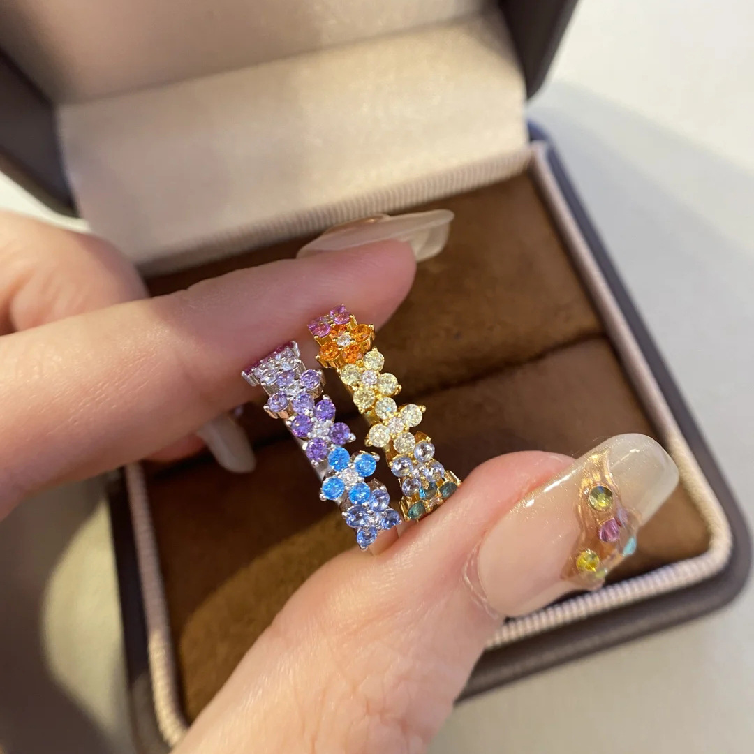 retro dopamine four-leaf clover ring french entry lux color diamond jardin monet wide ring row ring women