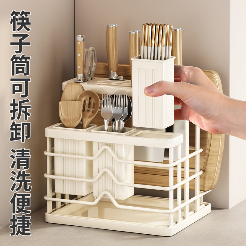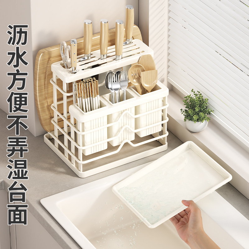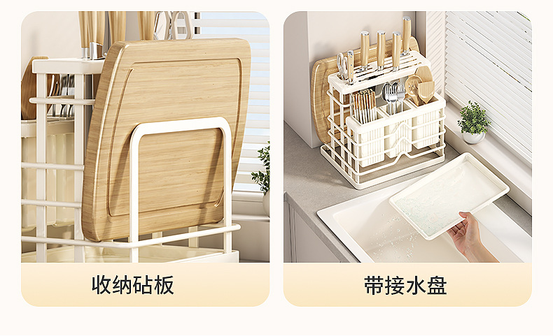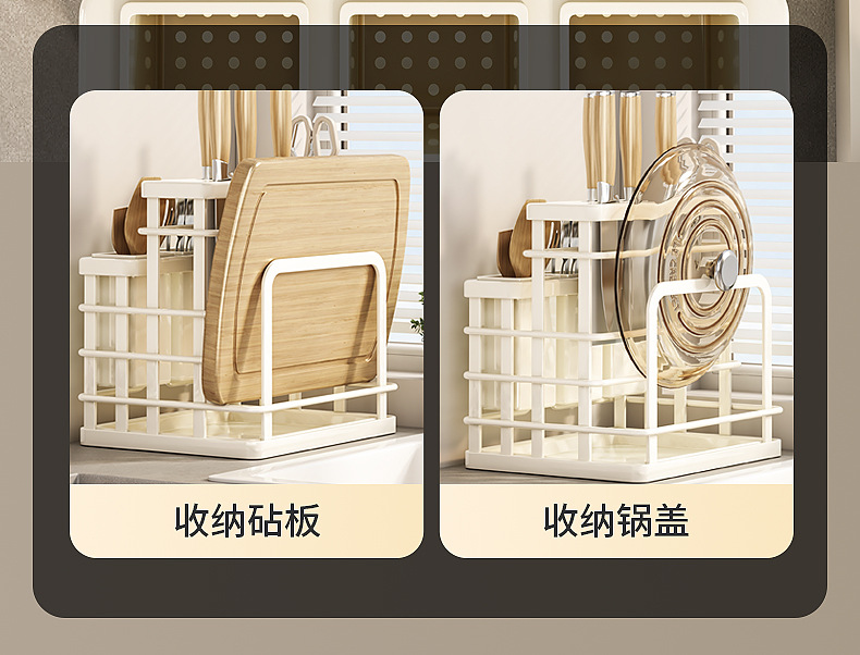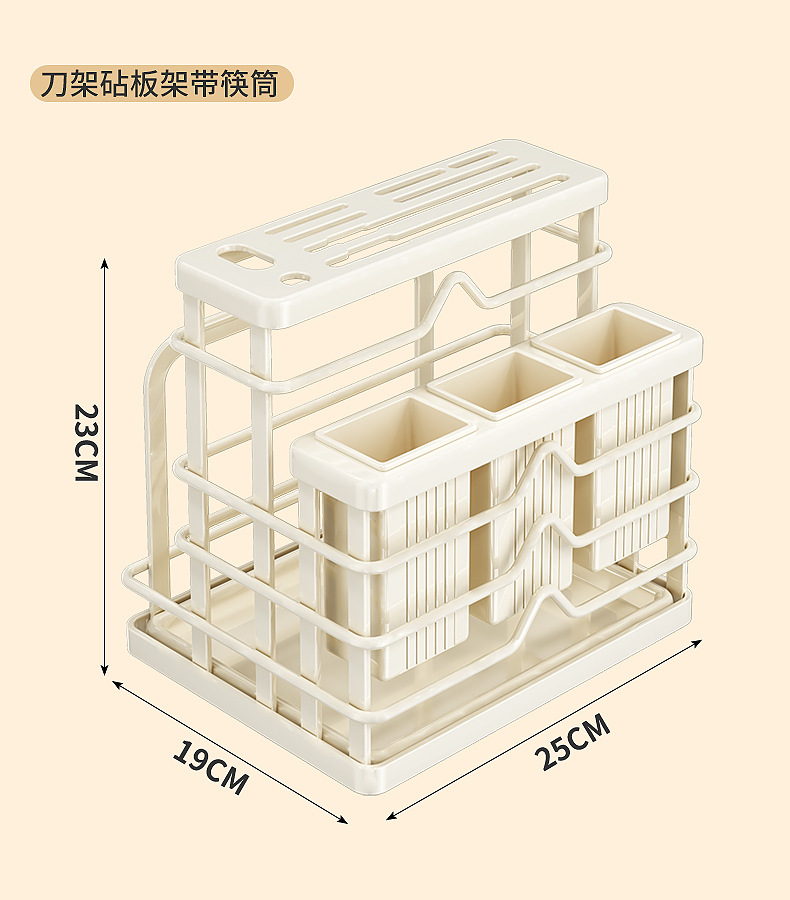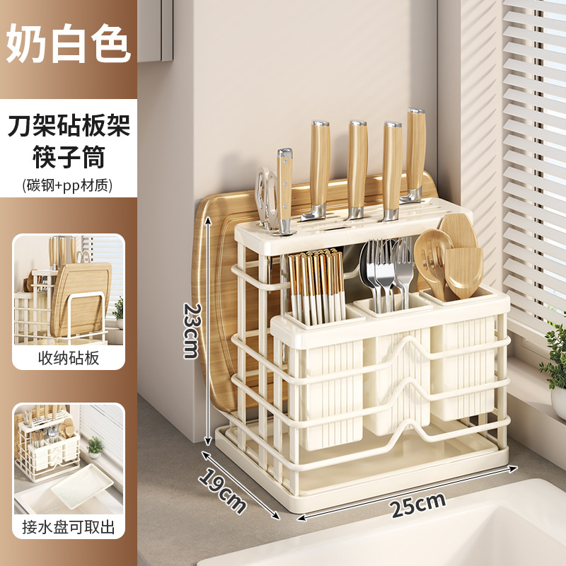 milky white-multifunctional knife rest-three cups + chopping board rack