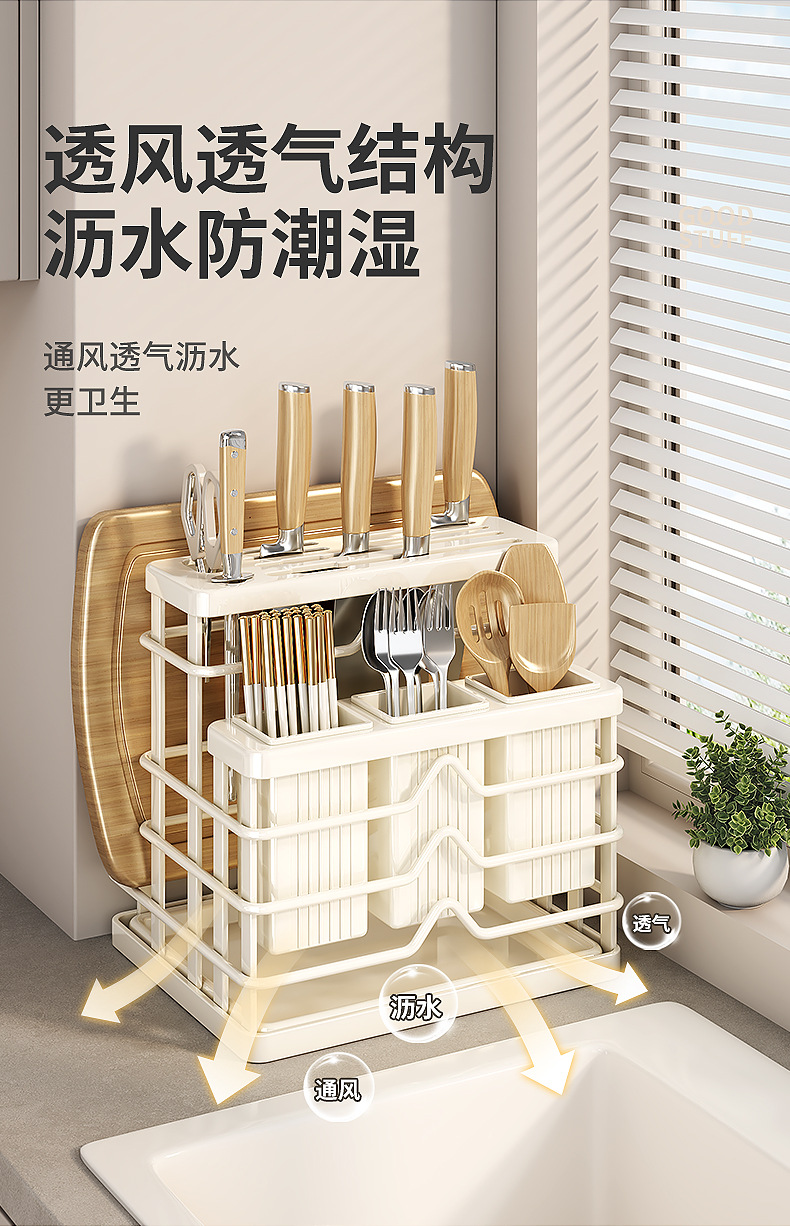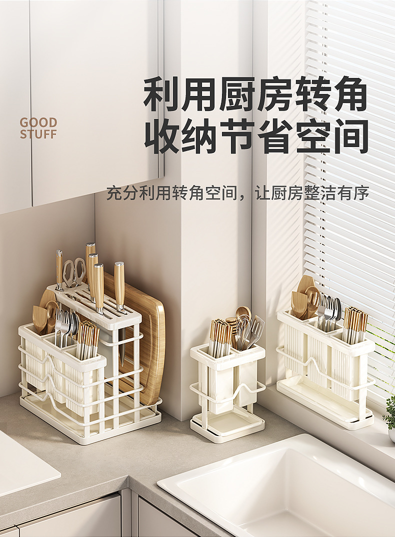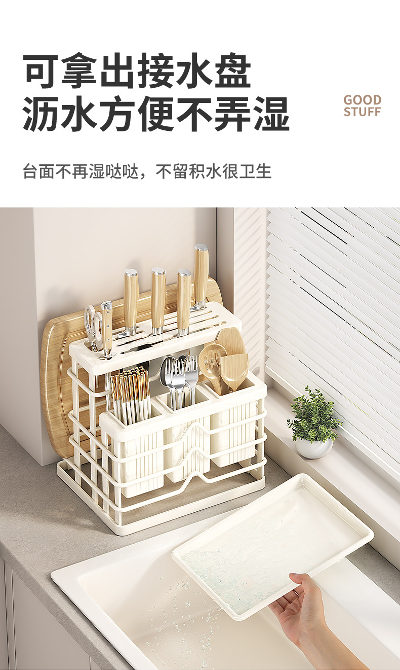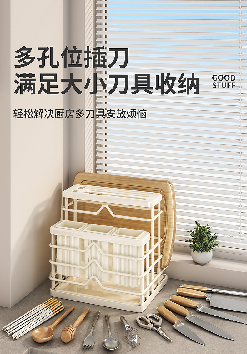 milky white-multifunctional knife rest-three cups + chopping board rack