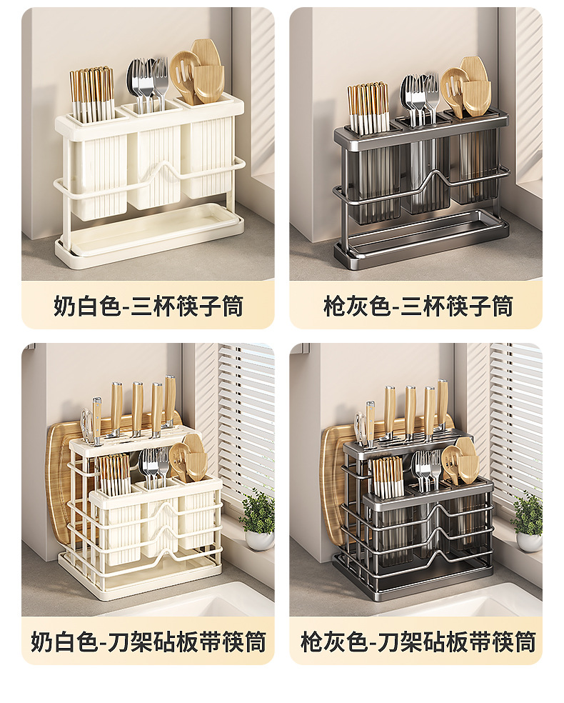 gun gray-multifunctional knife rest + three cups + chopping board rack