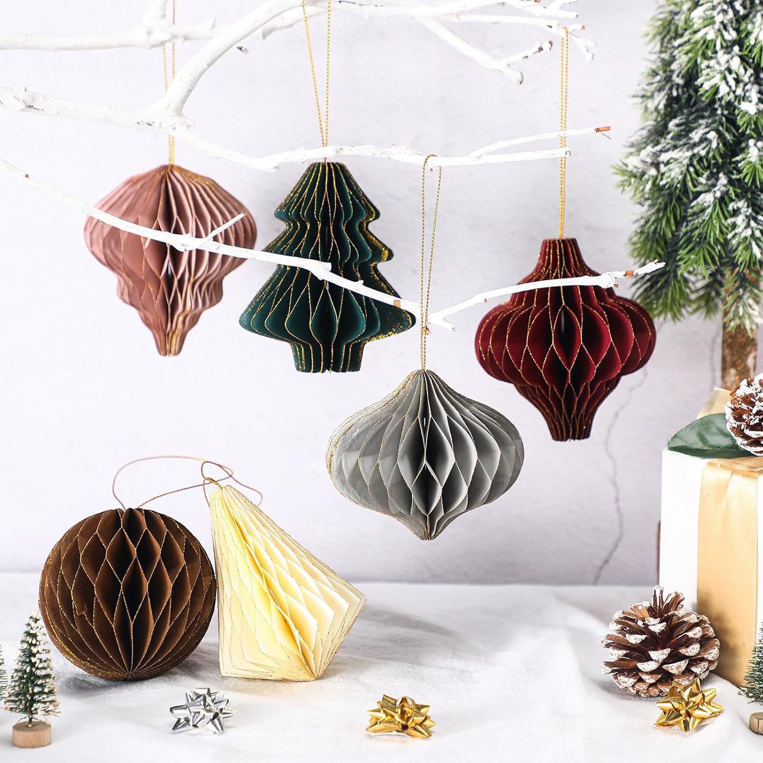 6003 christmas tree set of 6 dark red + light gray + light brown + beige + dark coffee + dark blackish green no. 2