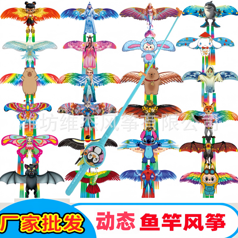 [35cm dynamic kite] classic chinese mythology book “shan hai jing” + f cartoon telescopic fishing rod with line