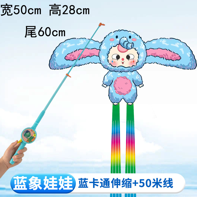 [35cm dynamic kite] blue elephant doll + f cartoon telescopic fishing rod with line