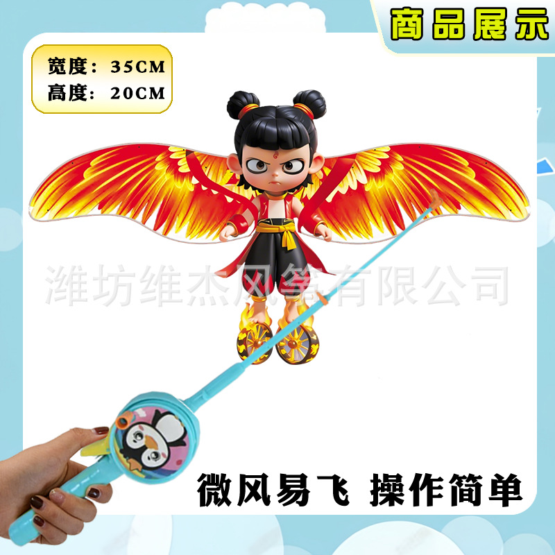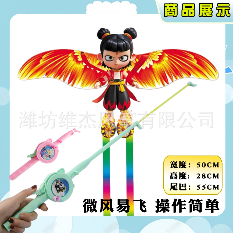 [35cm dynamic kite] nezha + f cartoon telescopic fishing rod with line