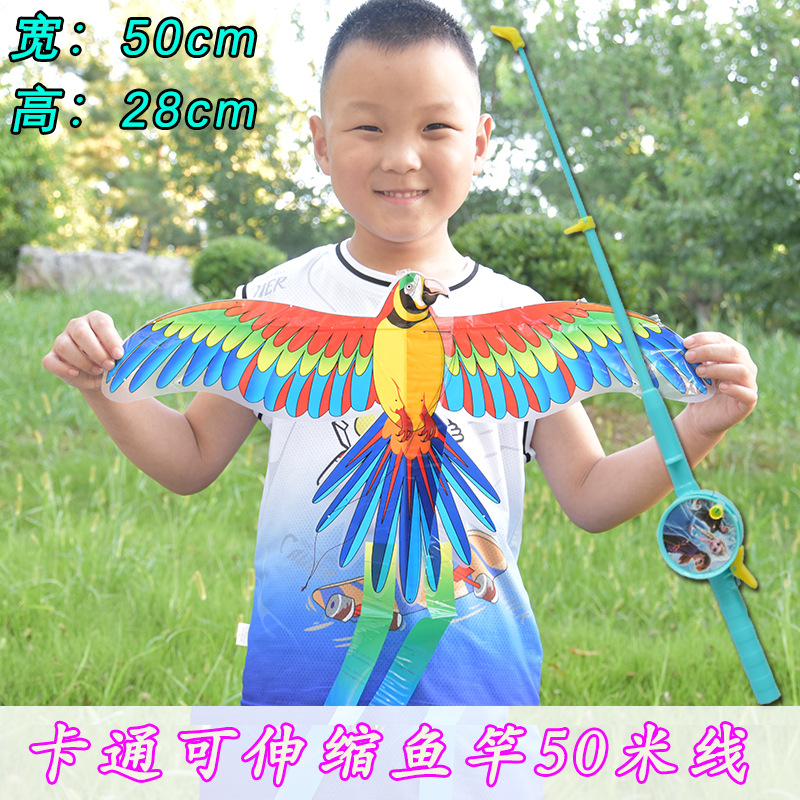 [35cm dynamic kite] parrot + f cartoon telescopic fishing rod with line