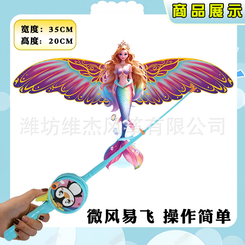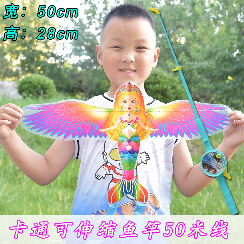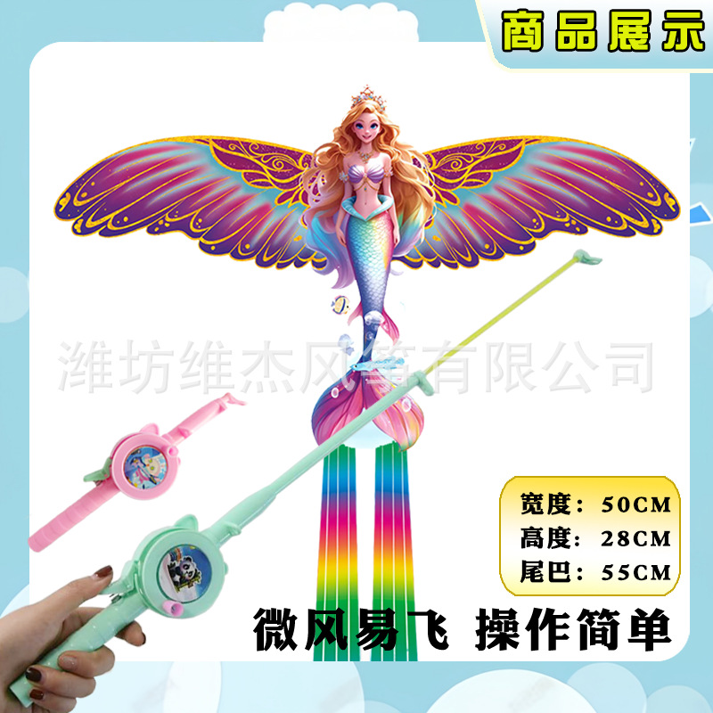 [35cm dynamic kite] dream mermaid + f cartoon telescopic fishing rod with line