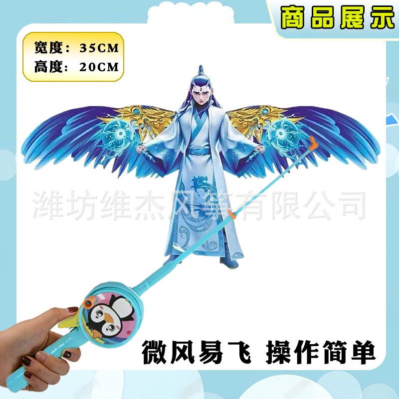 [35cm dynamic kite] blue phoenix bird + f cartoon telescopic fishing rod with line