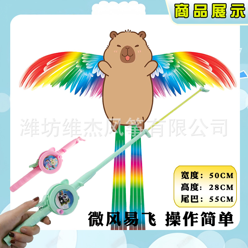[35cm dynamic kite] plump capybara + f cartoon telescopic fishing rod with line