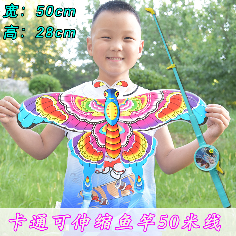 [35cm dynamic kite] butterfly + f cartoon telescopic fishing rod with line