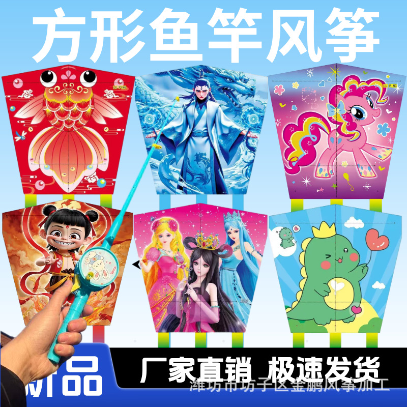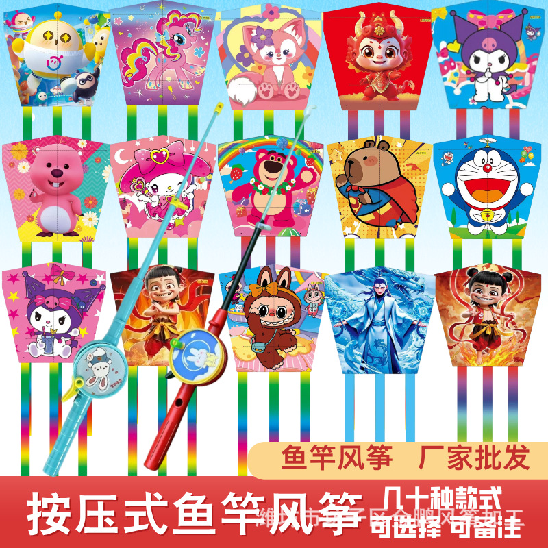 [plastic square piece] cartoon nezha ao c + macaron fishing rod