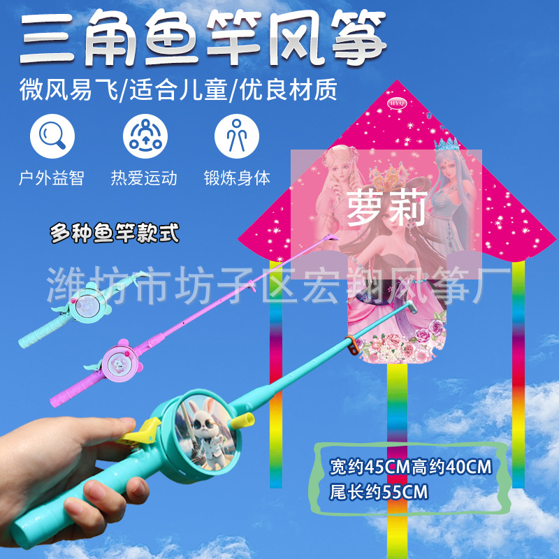 square piece kite mixed hair + new radish cartoon telescopic fishing rod with line