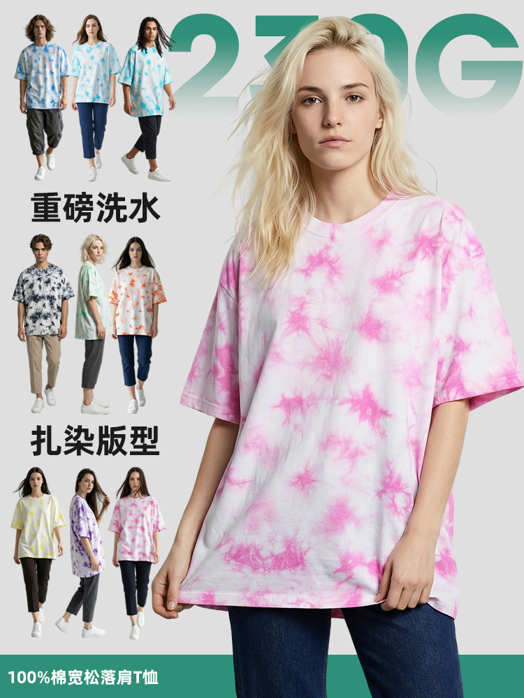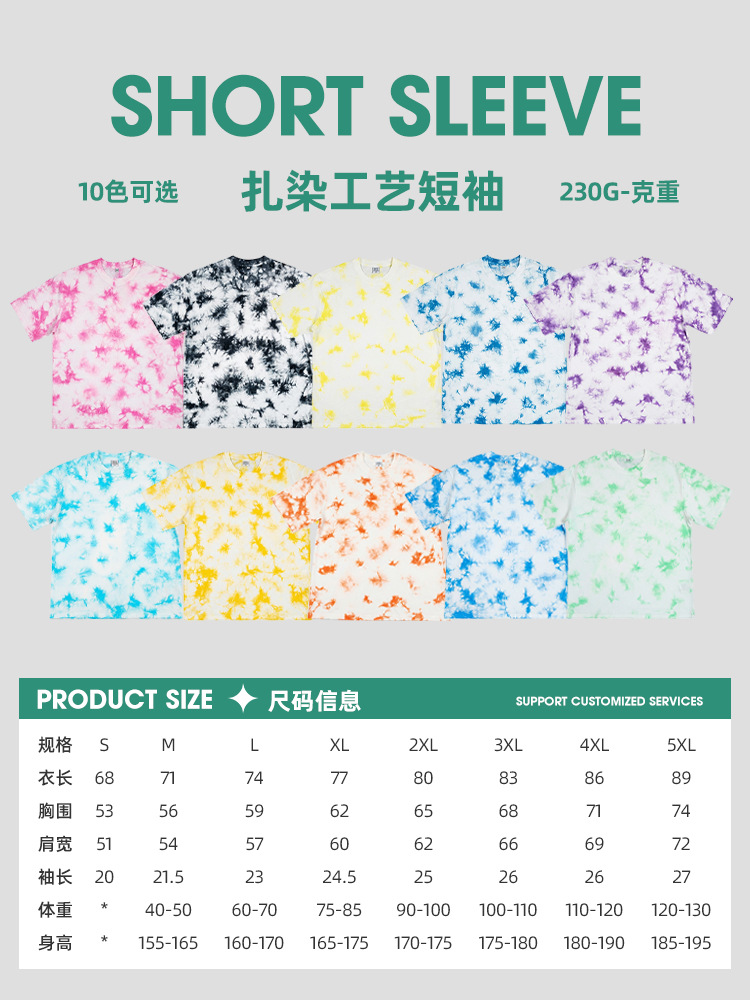 Professional export-oriented heavy-weight tie-dye T-shirt factory, capable of accepting large and small batch orders. We have been providing stable supplies for cross-border sellers, foreign trade companies, and trendy brand names for a long time. Support on-site inspection of factories and sample clothing viewing! We offer a quote based on your drawings, free design and sample making, one-on-one dedicated customer manager, and full-process order tracking to ensure that you can rest assured in purchasing and selling!