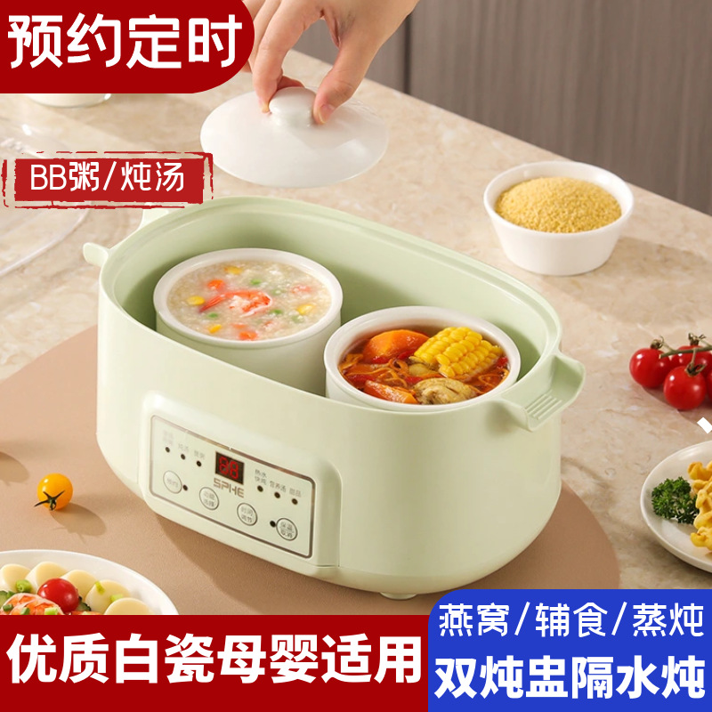 white【 white porcelain double slow cooker]]