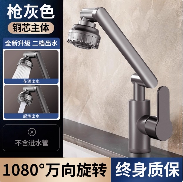 [gun gray] universal for kitchen and bathroom – omnidirectional faucet with two-position hot/cold switching