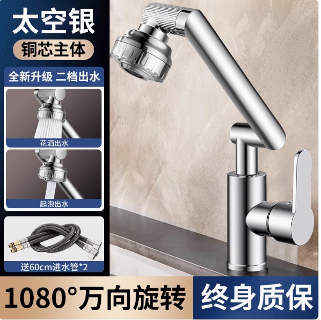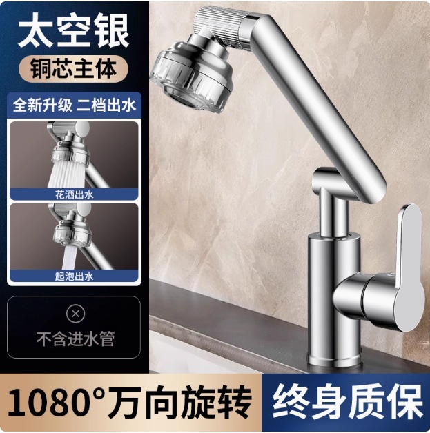 [bright silver] kitchen and bathroom universal-universal faucet two-gear hot and cold switching