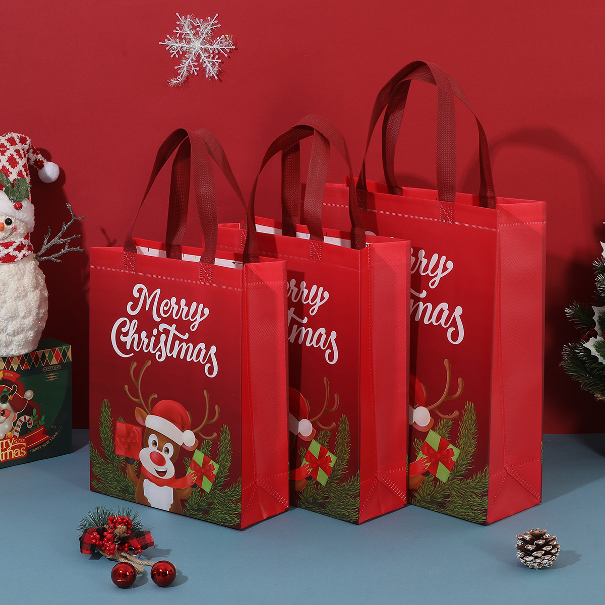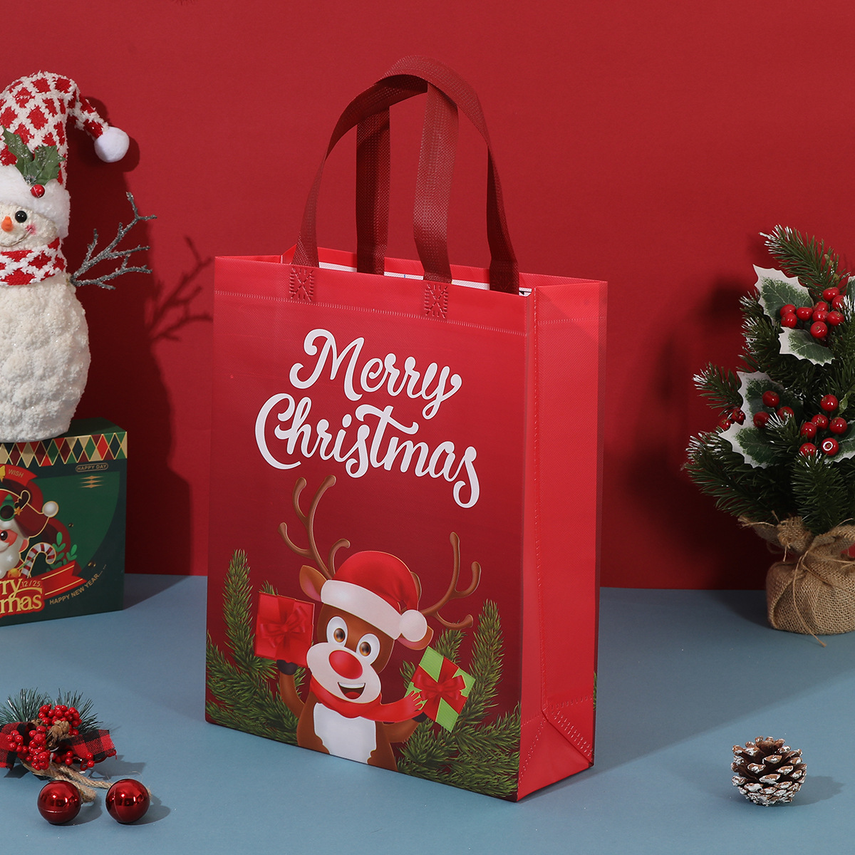 christmas deer; small size 25.5*33*10; color printing laminated non-woven fabric