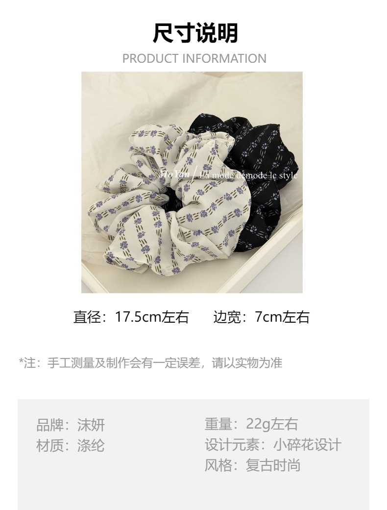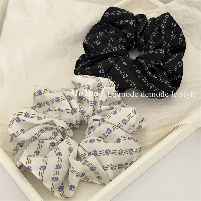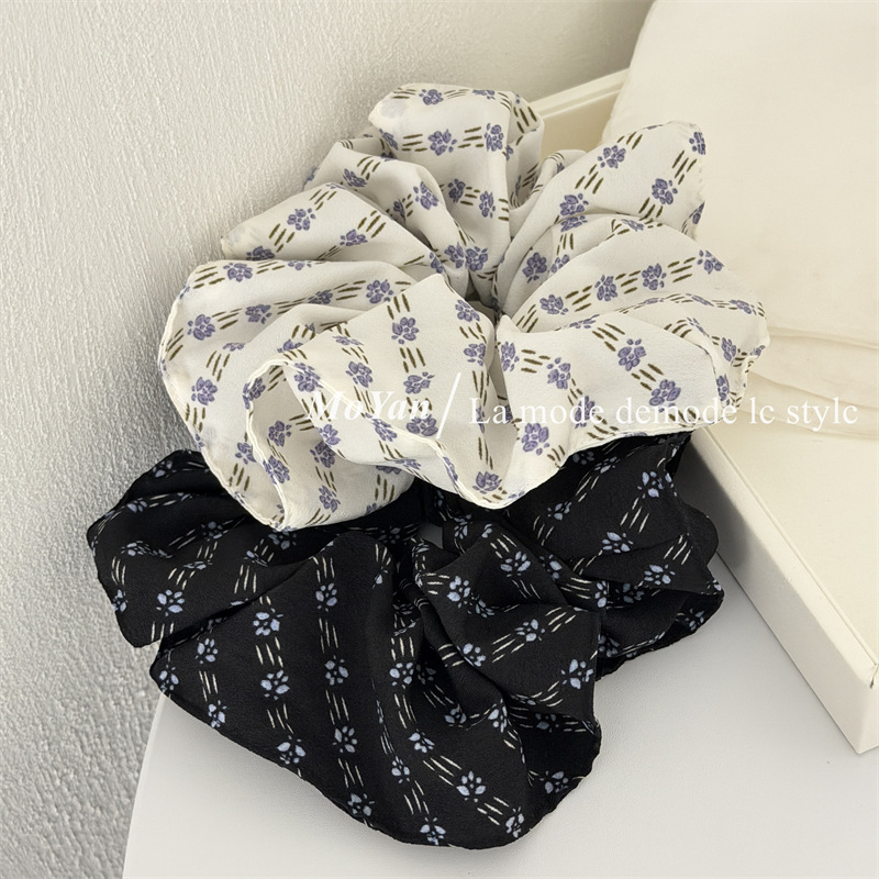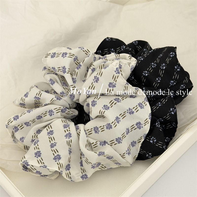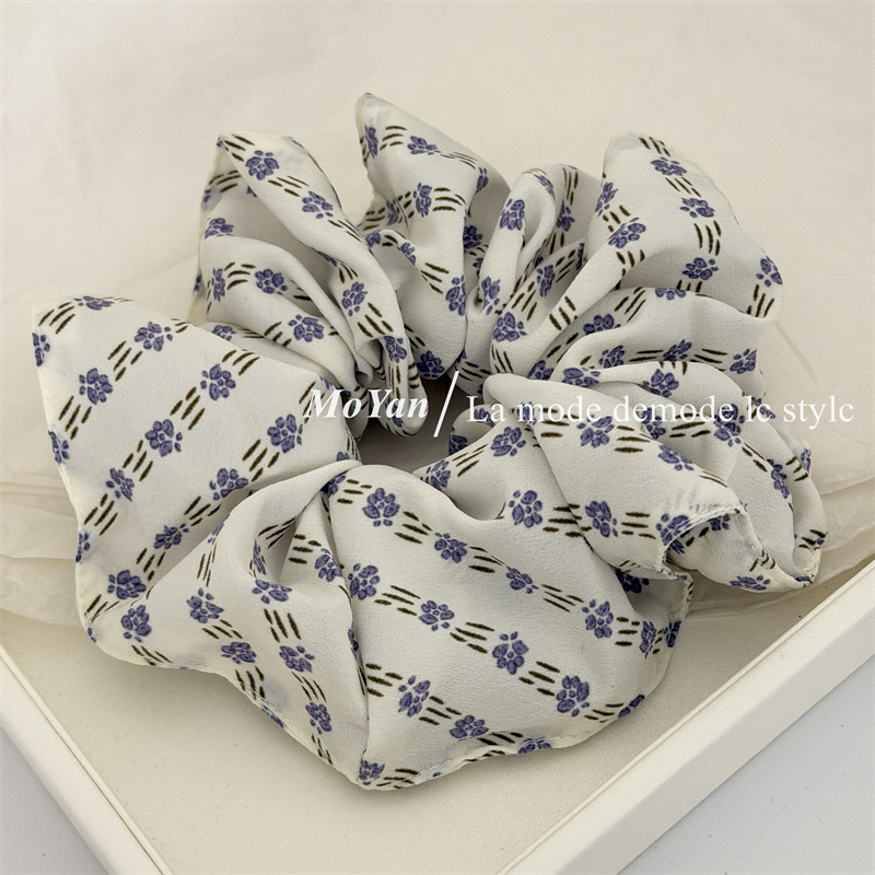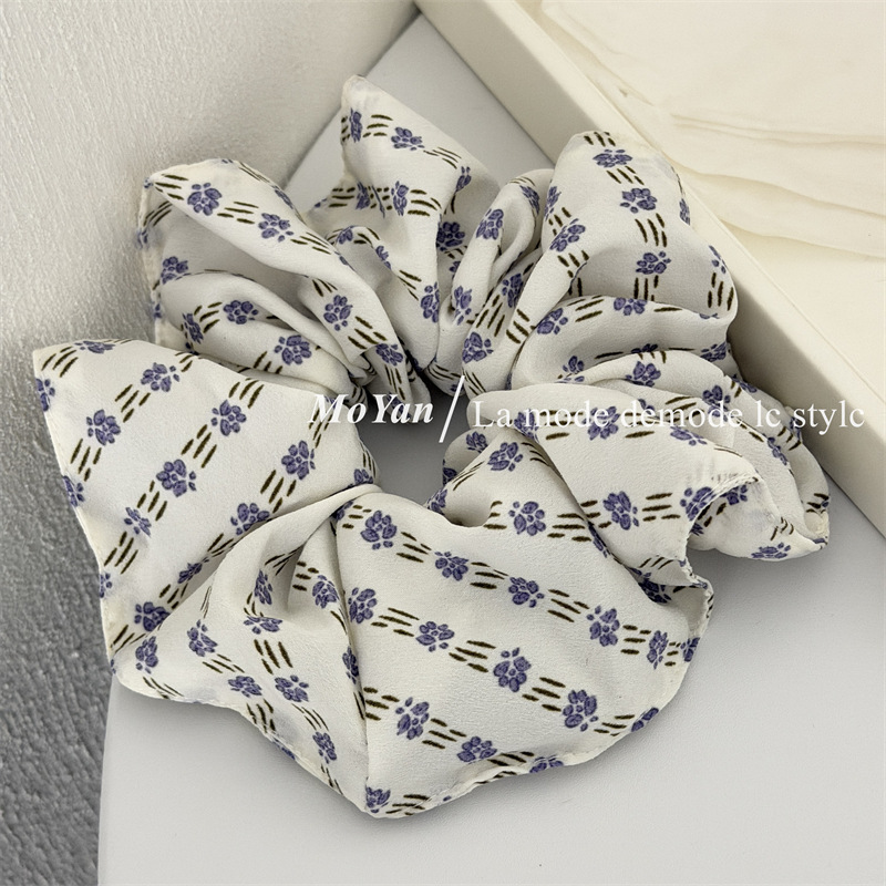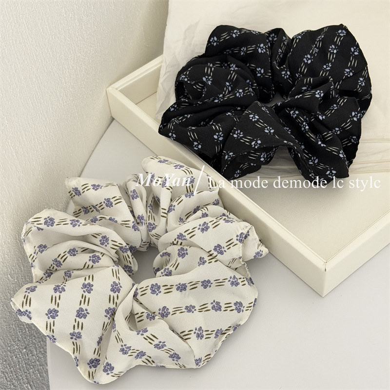 simple vintage small floral fabric large intestine hair ring temperament wild hairtie female online influencer ponytail hair string tie head flower