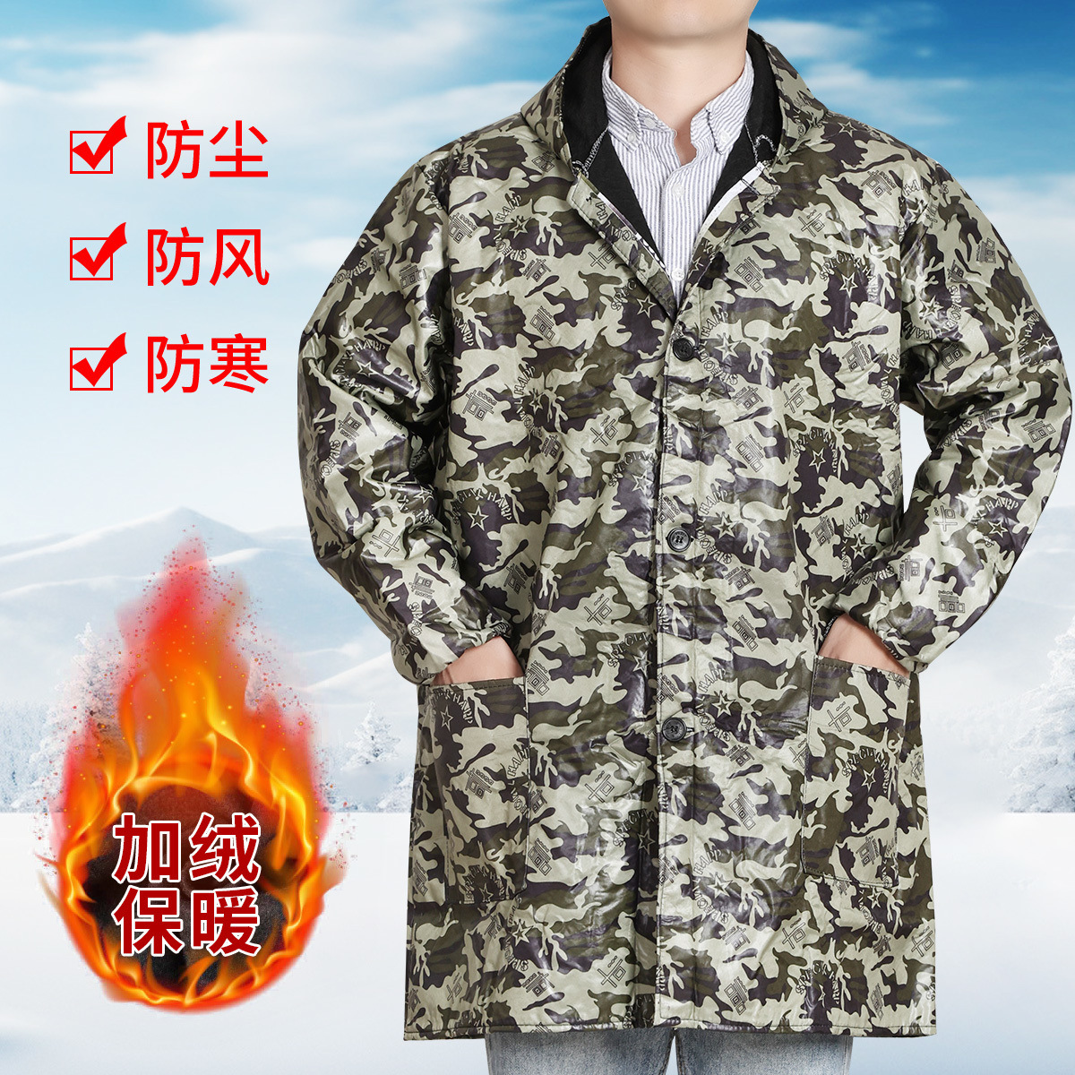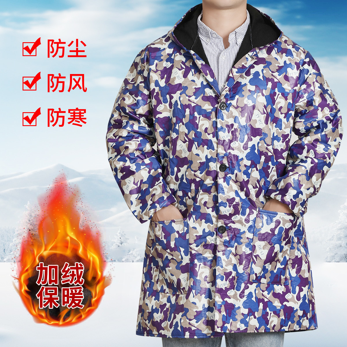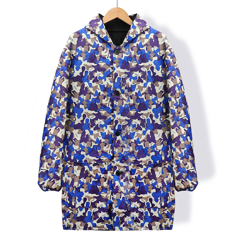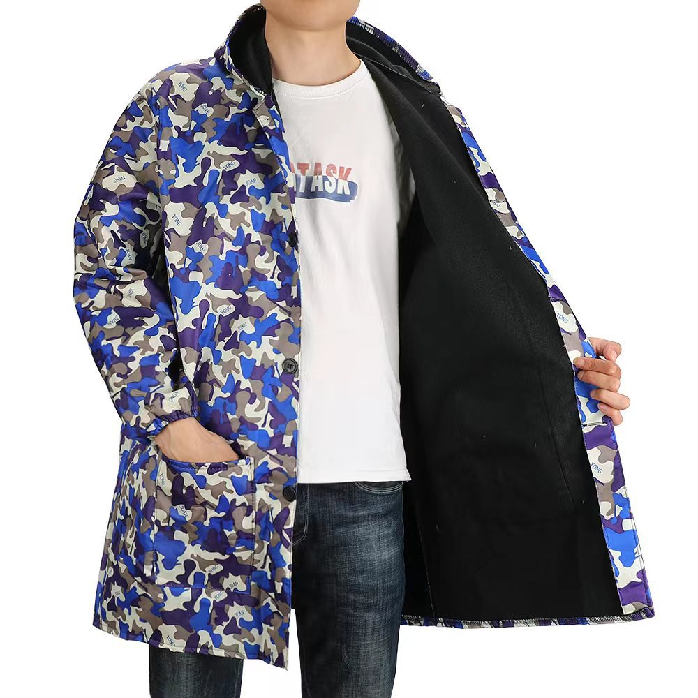 large size; army blue plus velvet hooded button