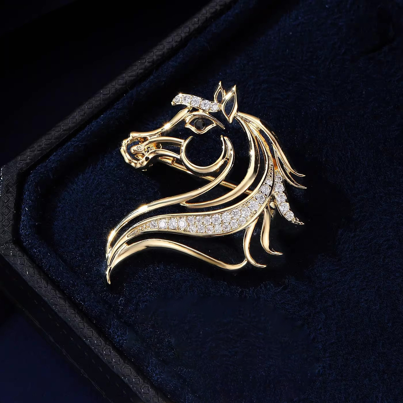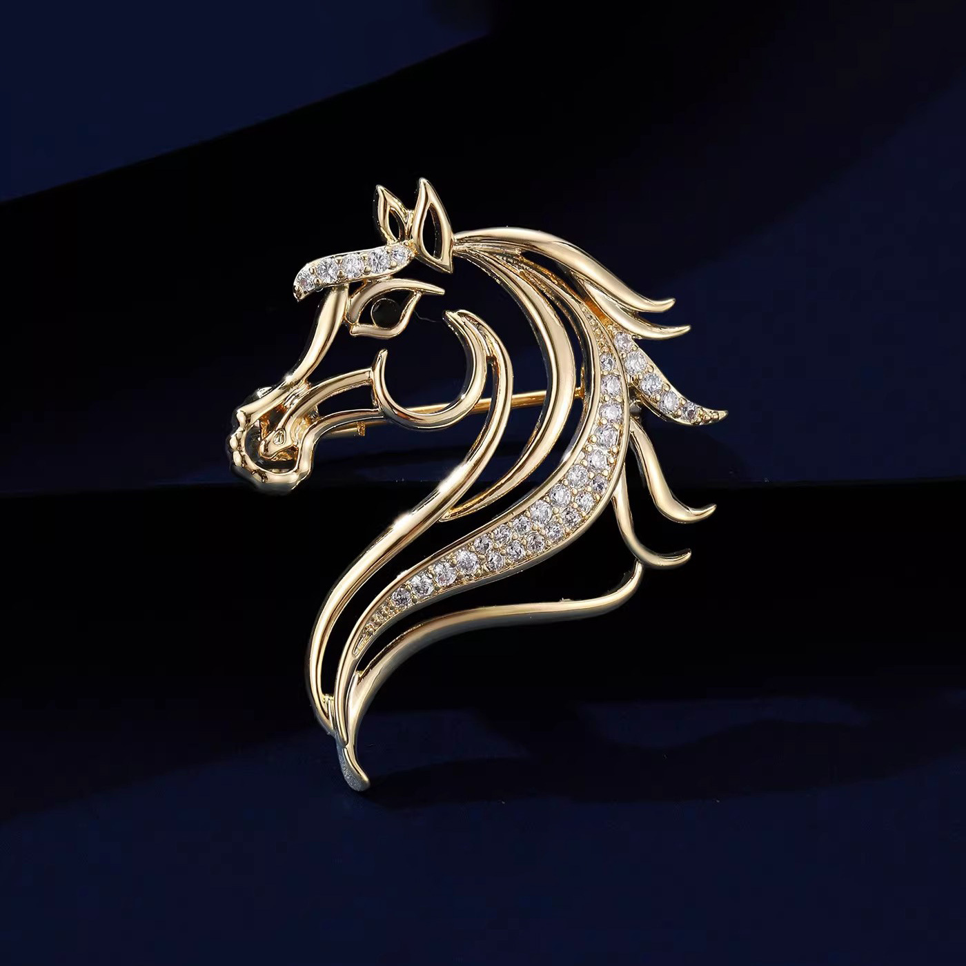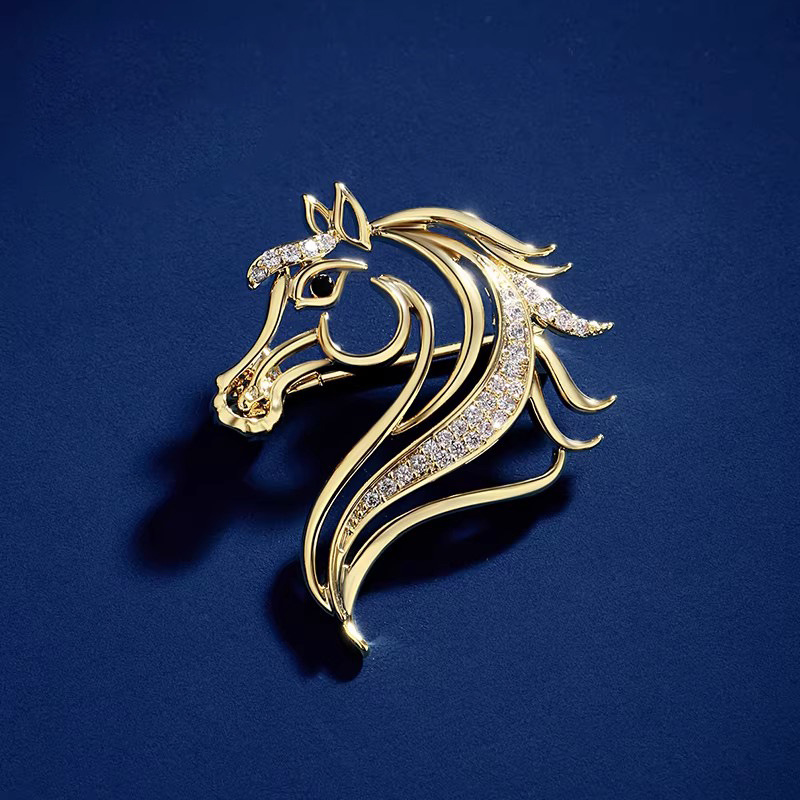 golden pretty horse brooch