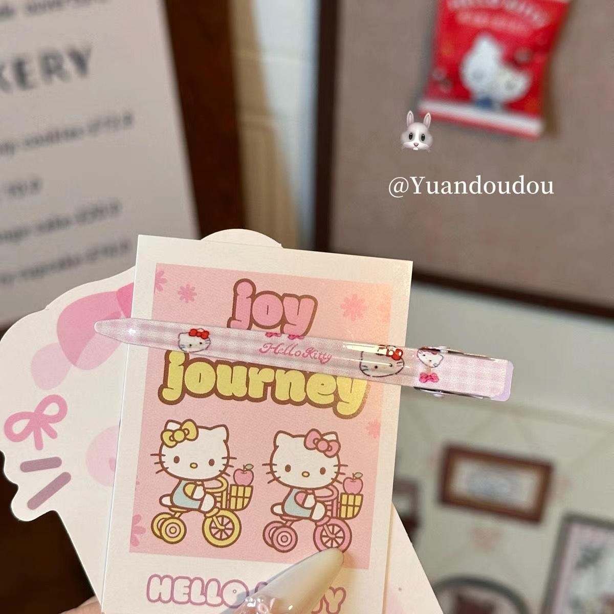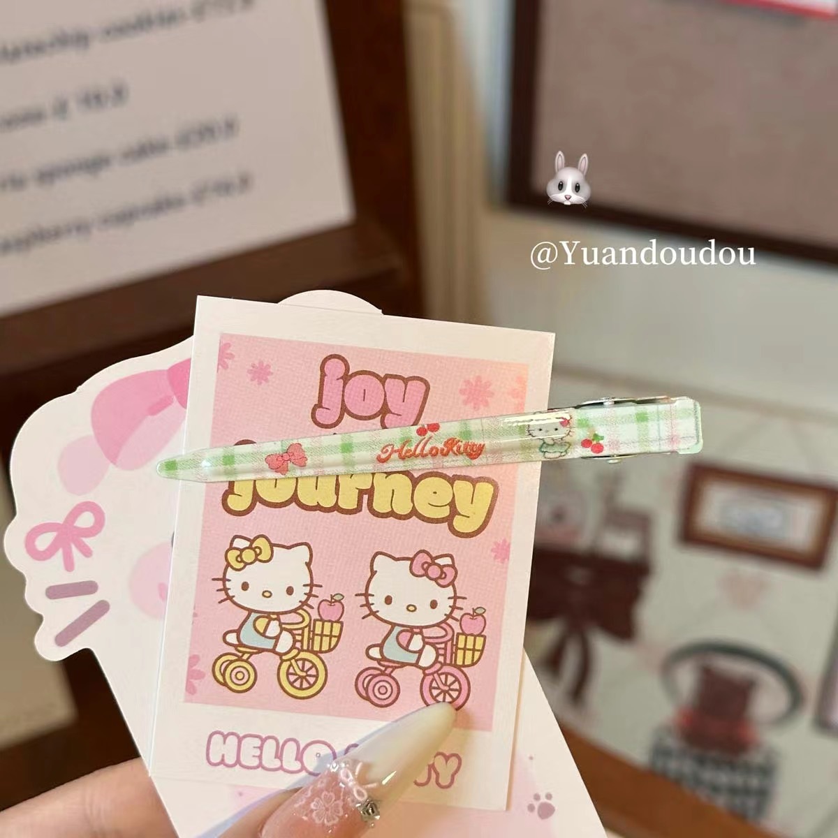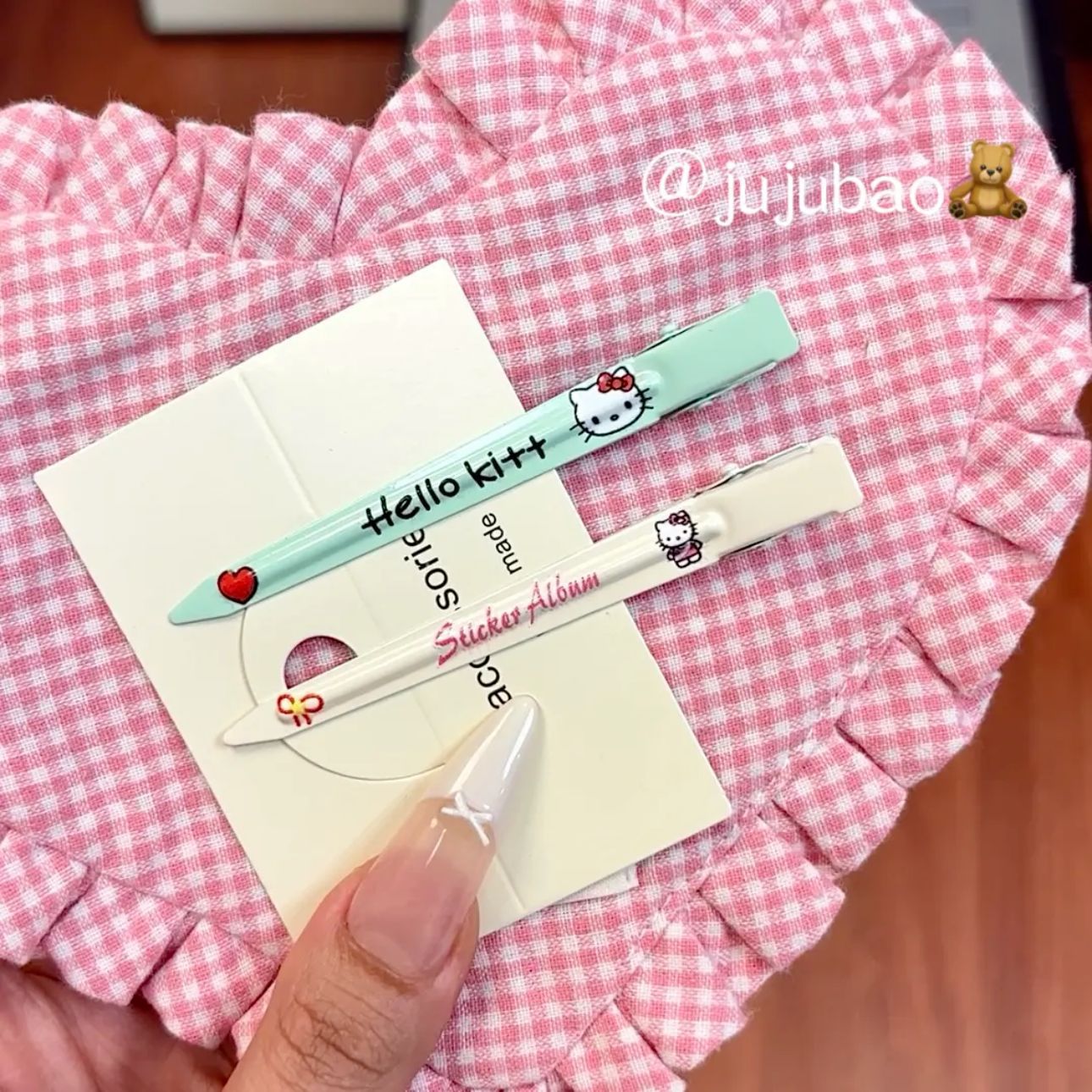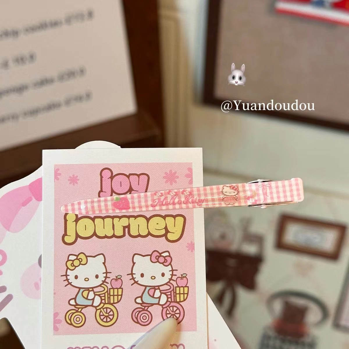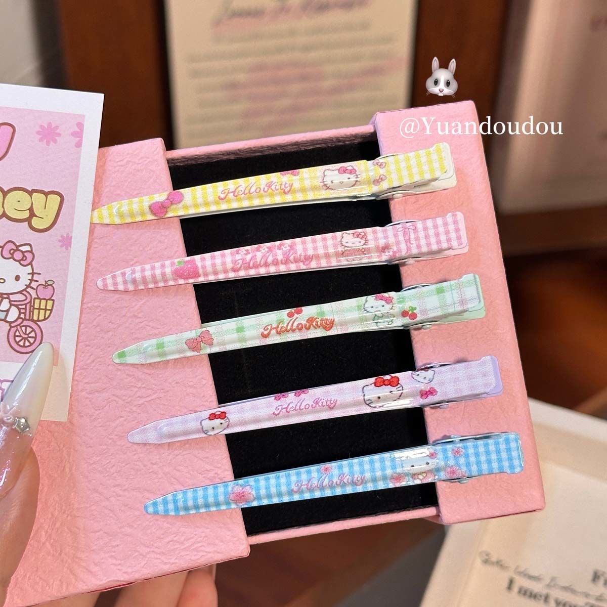 cosmetic clip plaid cat pink
