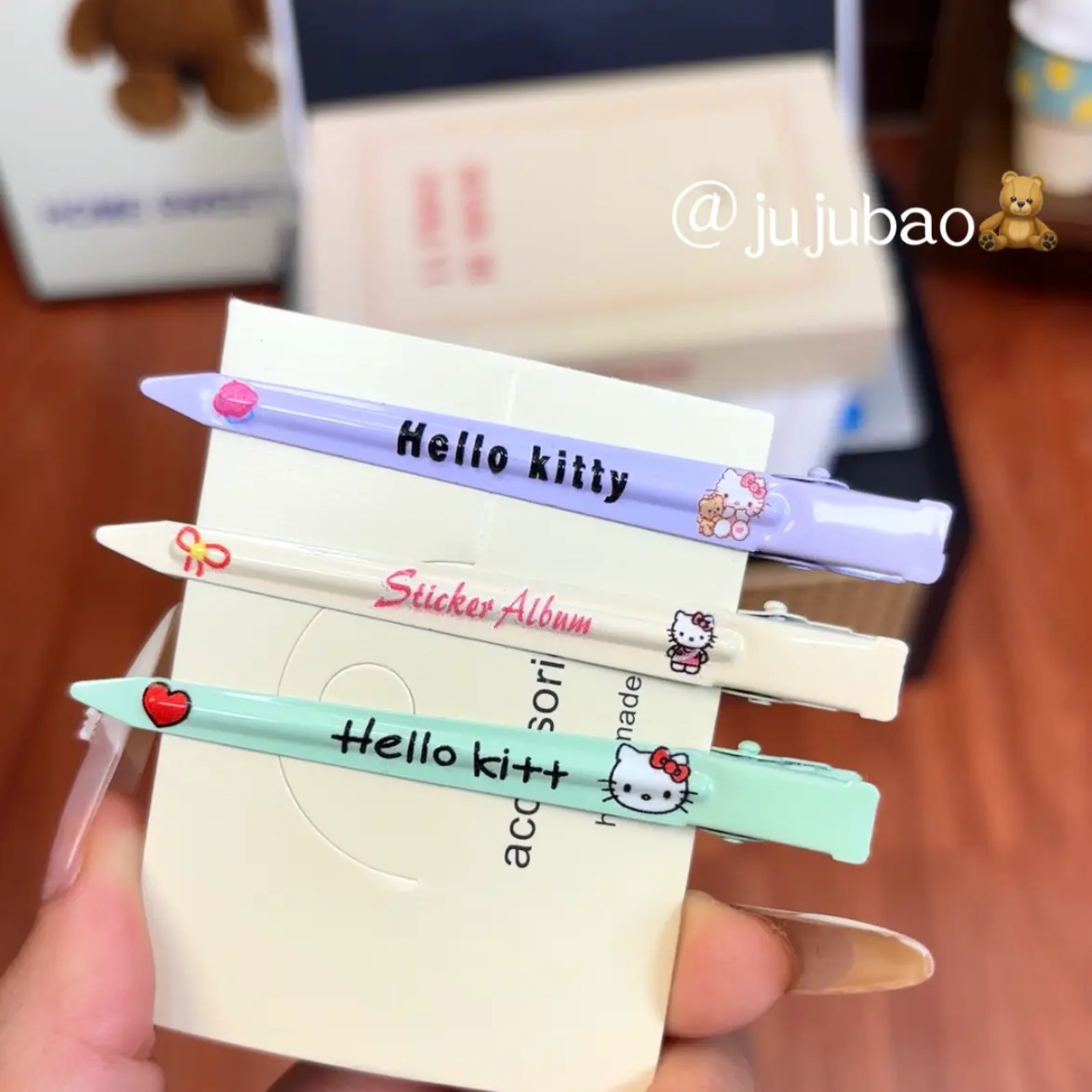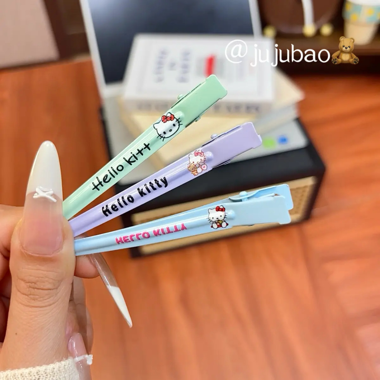 cosmetic clip plaid cat green