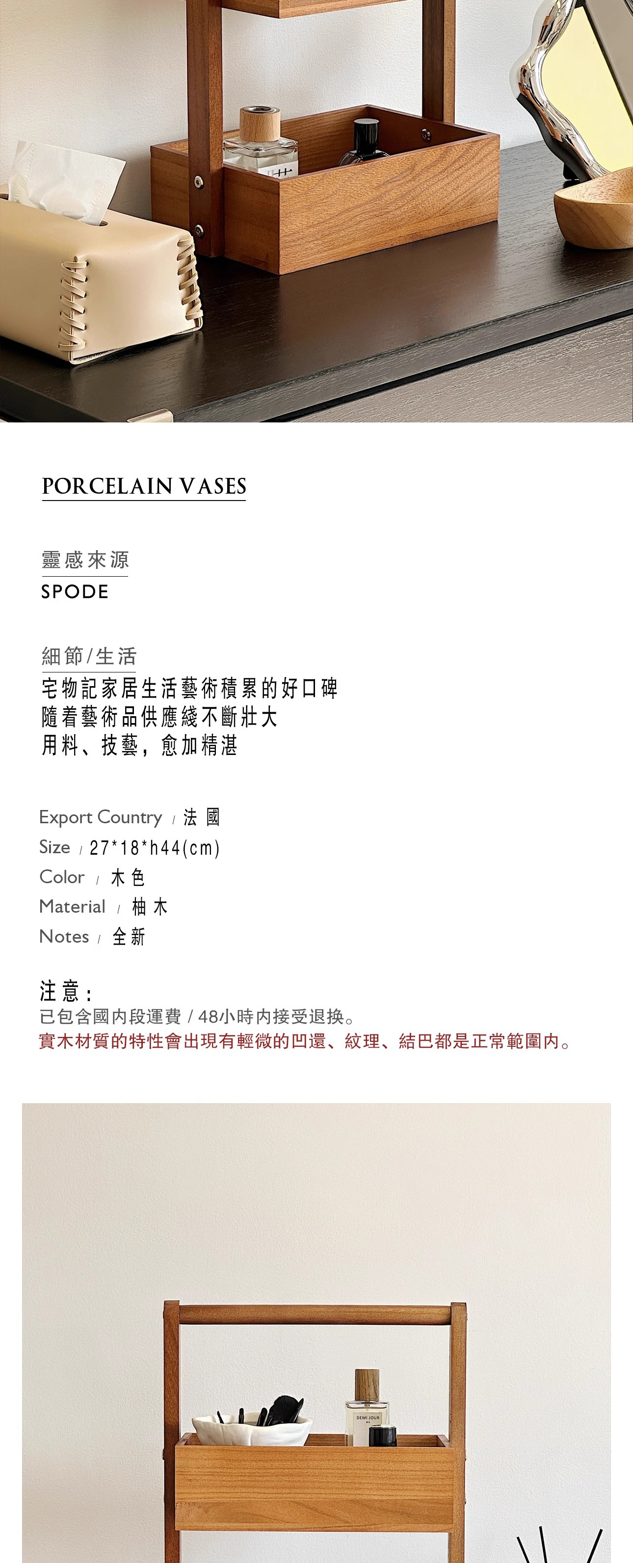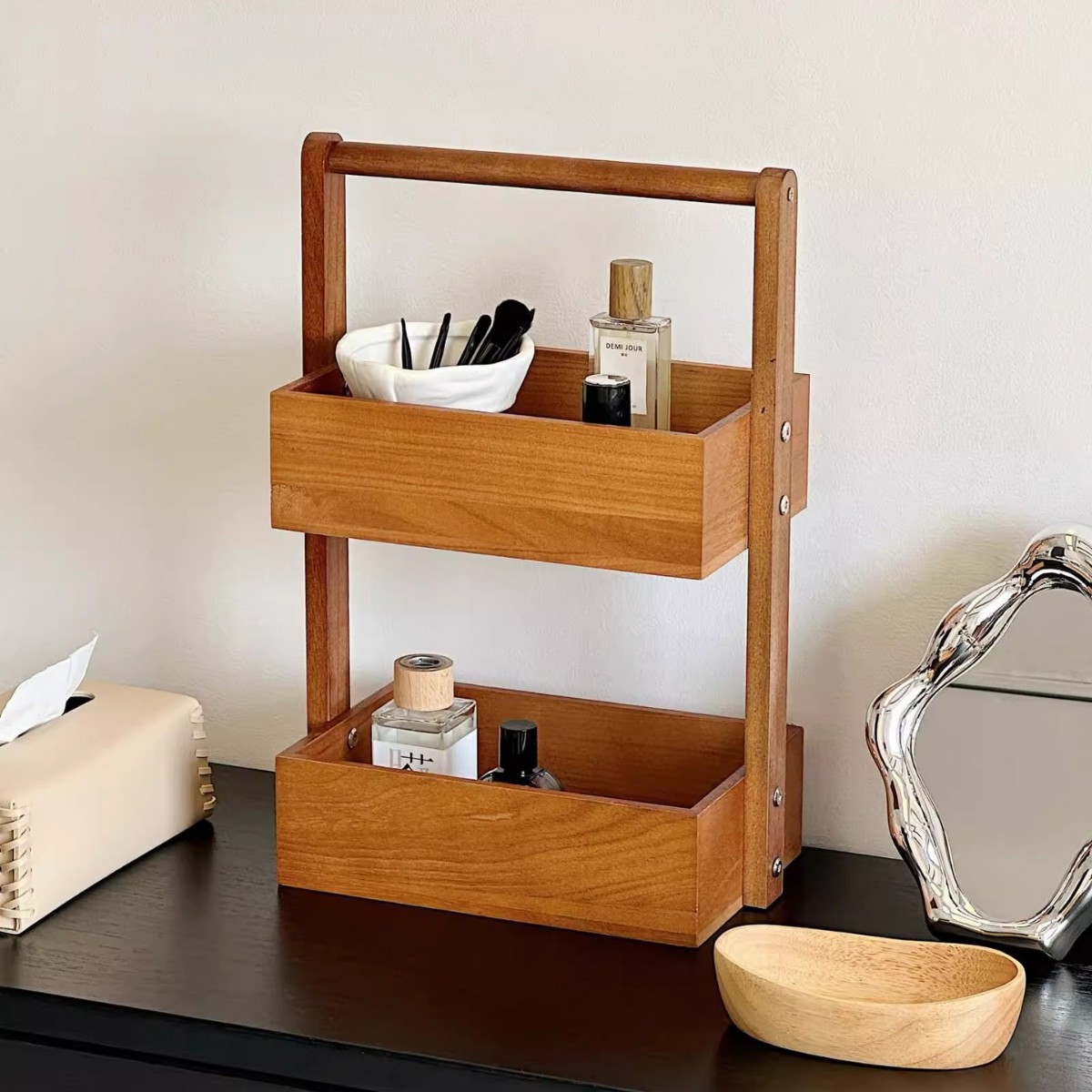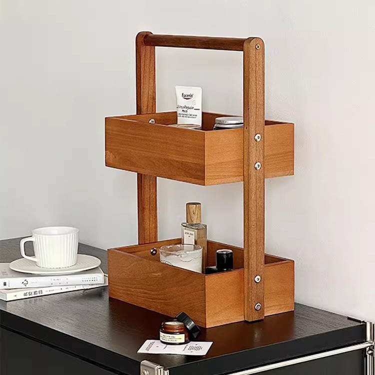 double-layer solid wood storage box 27*18 * 44cm