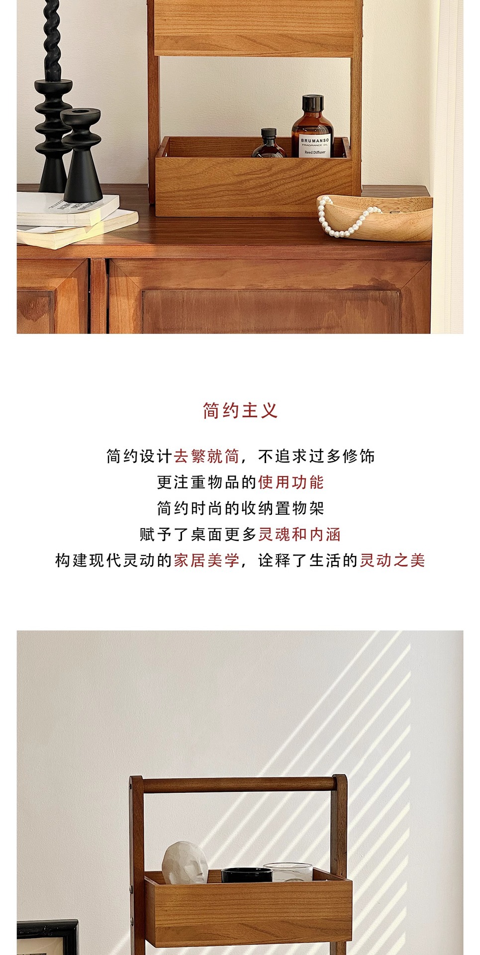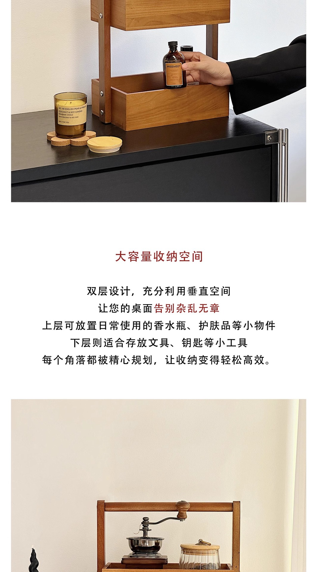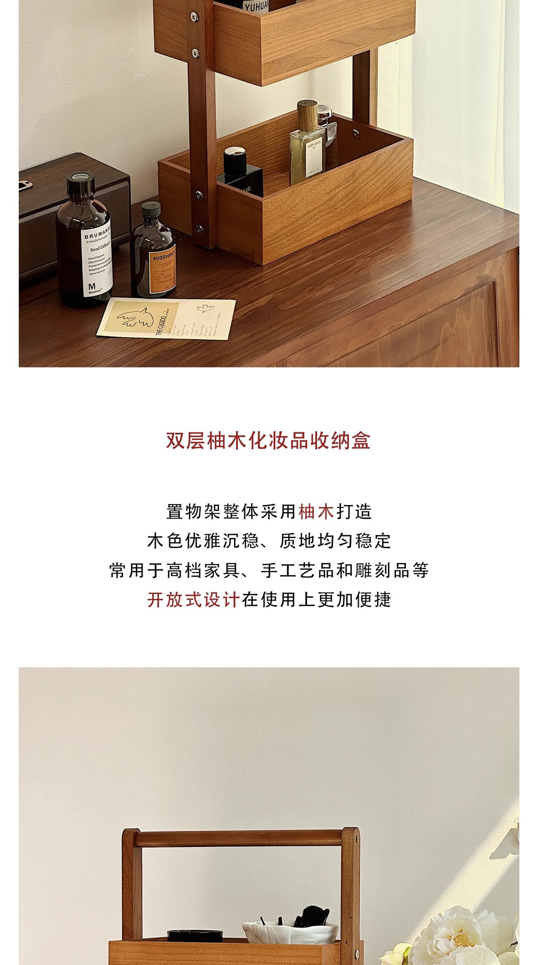 double-layer solid wood storage box 27*18 * 44cm